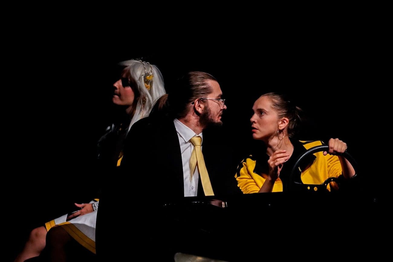 Svi smo čuli varijacije izreke „Život je ono što se događa dok radiš druge planove.“ To bi mogla biti polazna točka kazališne predstave koja je introspektivna i globalna, duhovita i groteskna. Tri potpuno različita (arhe)tipa putnika, glazba u automobilu oko koje se povlači prva rasprava, neoprezno kočenje i suputnička panika pridržavanja za rukohvat, opće nepovjerenje i zabadanje nosa u tuđu privatnost, nerazumijevanje koncepata koji odudaraju od naših… Početak je njihova putovanja izgledao kao niz suludih odluka, pijana večer koju treba zaboraviti, eksces kojemu se nitko neće ni smijati. Međutim, svatko od njih ima dubok osobni motiv zbog kojega želi ako ne baš pobjeći, a ono barem izmjestiti se iz svijeta u kojemu trenutačno ne može funkcionirati.