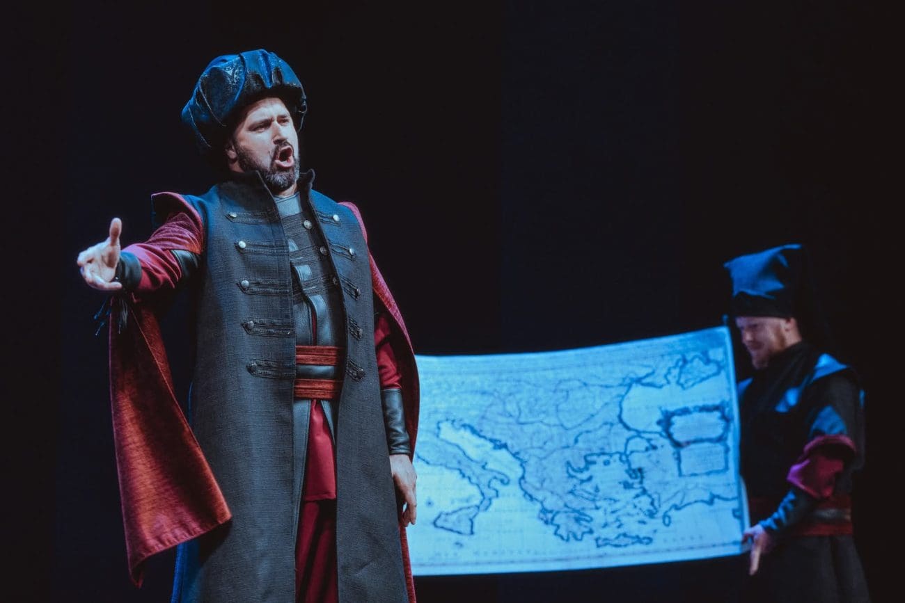O veličanstvenim solistima koji su nastup učinili pravim spektaklom moglo bi se pisati i govoriti danima. Božo Župić bio je sjajan kao Sulejman Veličanstveni, prkosan, tvrdoglav i bahat, a osim tamnim, gustim tonom i puninom, osobito u baršunastim dubinama, briljirao je i glumački. Bio je uvjerljiv u interakciji s liječnikom Levijem (uvijek sigurni Joško Tranfić) i prepredenim velikim vezirom Mehmedom Sokolovićem, kojega je s mnogo glumačke dosjetljivosti i neupitna pjevačkog kapaciteta utjelovio Bože Jurić Pešić. Jedno od desetaka fantastičnih rješenja redateljice i koreografkinje bilo je uključivanje plesačica koje su i pokretom i sablasnim kostimima nalikovale na nemilosrdne suđenice koje turskom vojskovođi, uz stalna liječnička upozorenja, proriču nesretan kraj.