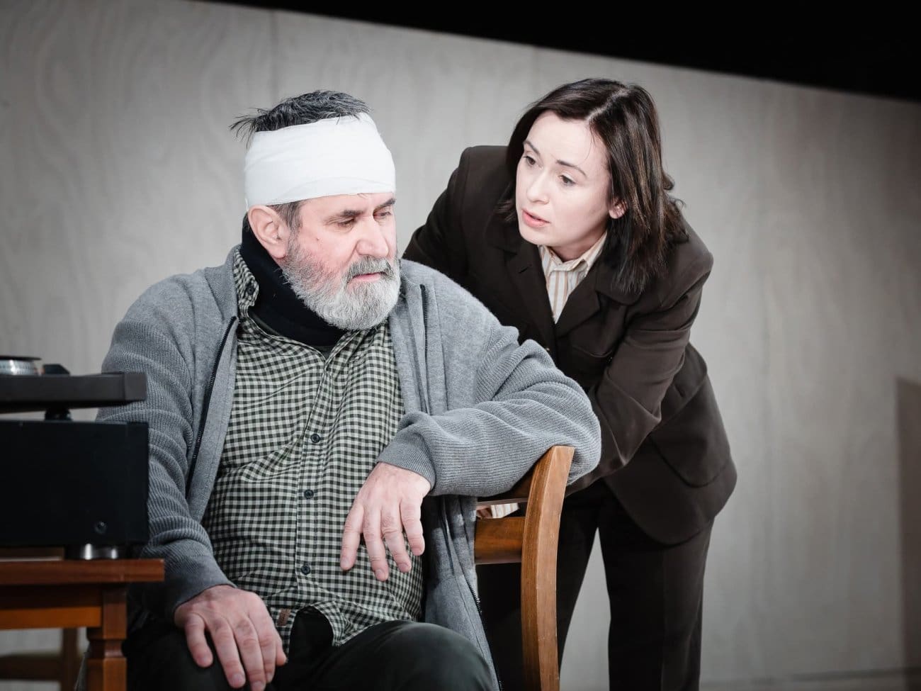 U glumačkom je triju Mlikota najjača karika. Jednako su potresne i njegove slomljene tišine i njegova eksplozivna ludila, koja igra svim bićem, uvijek ostavljajući barem površinsku sjenu onoga čovjeka koji je mogao biti pozitivac, da nije tako očajno i samoopravdavajuće počinio zločin. Od zahtjevne je uloge napravio psihološku studiju za pamćenje. Kod glumica ima prostora za napredak u jezičnom oblikovanju, koje bi svakako trebalo ostaviti i dijalektologu. Iako se tekst „brani“ majčinim zagrebačkim podrijetlom, za razliku od Slavkova, činjenica da tri člana iste obitelji govore potpuno drugačijim idiomima, a ondje gdje bi to trebala biti govorna karakterizacija (majka koja misteriozno progovara jezikom Dalmatinske zagore) propada zbog posvemašnja nerazlikovanja dalmatinskih štokavskih idioma od naglasaka koji su karikatura bošnjačkih. Videk Hranjec kao Kći dodatno otežava situaciju svojim tvrdim razgovornim idiomom koji na trenutke, osobito u sasvim suvišnom posljednjem monologu, ispada artificijelno i neuvjerljivo.