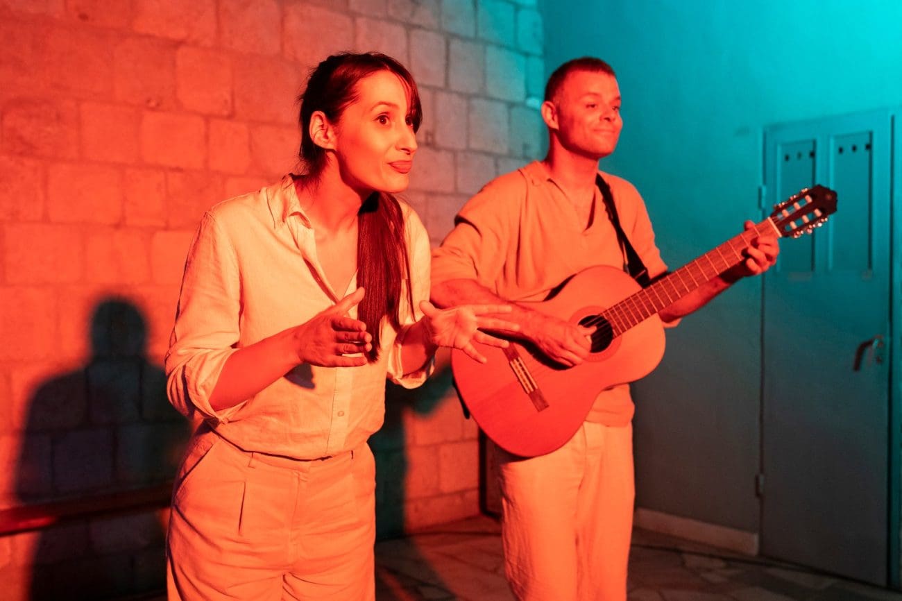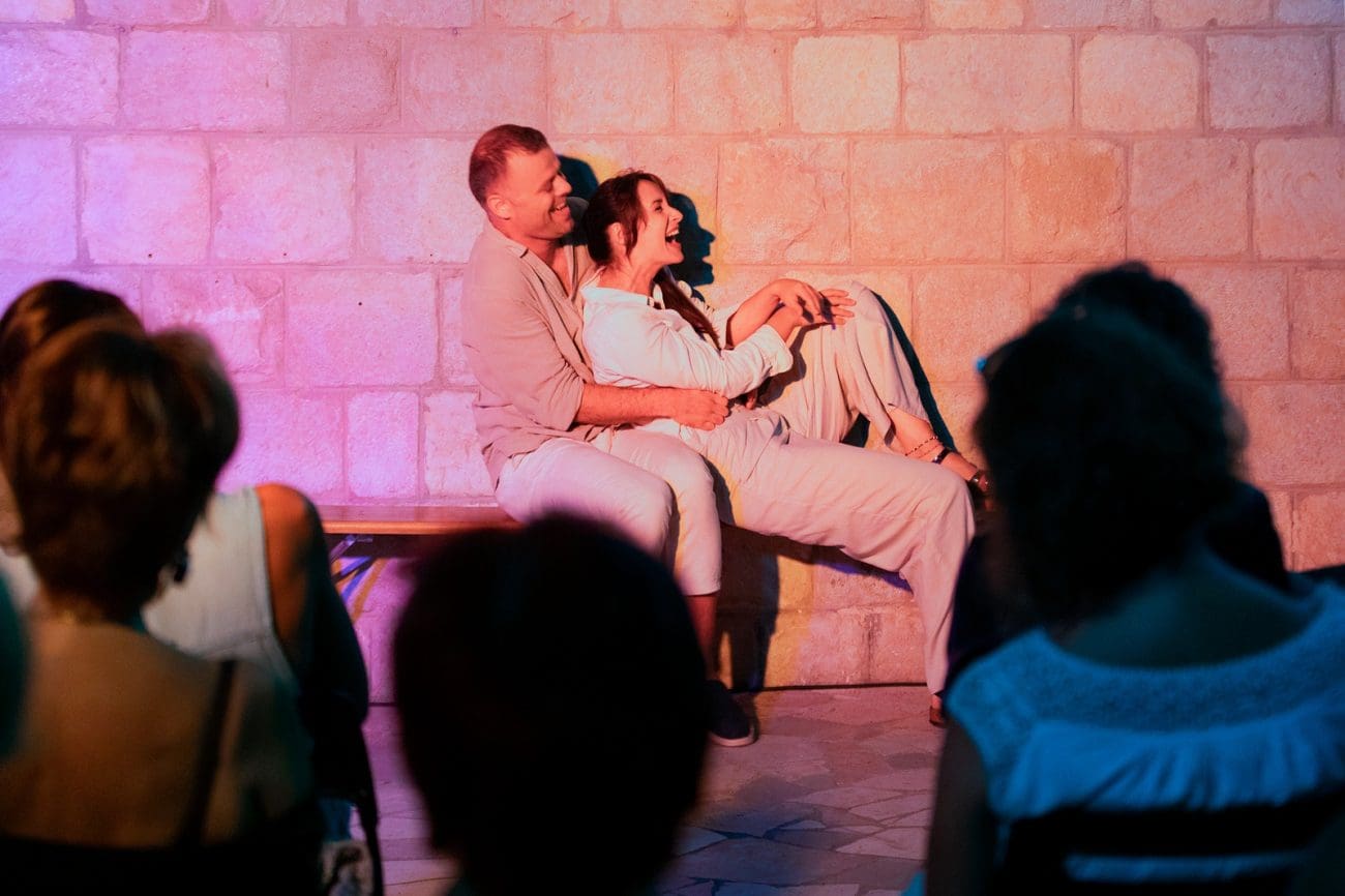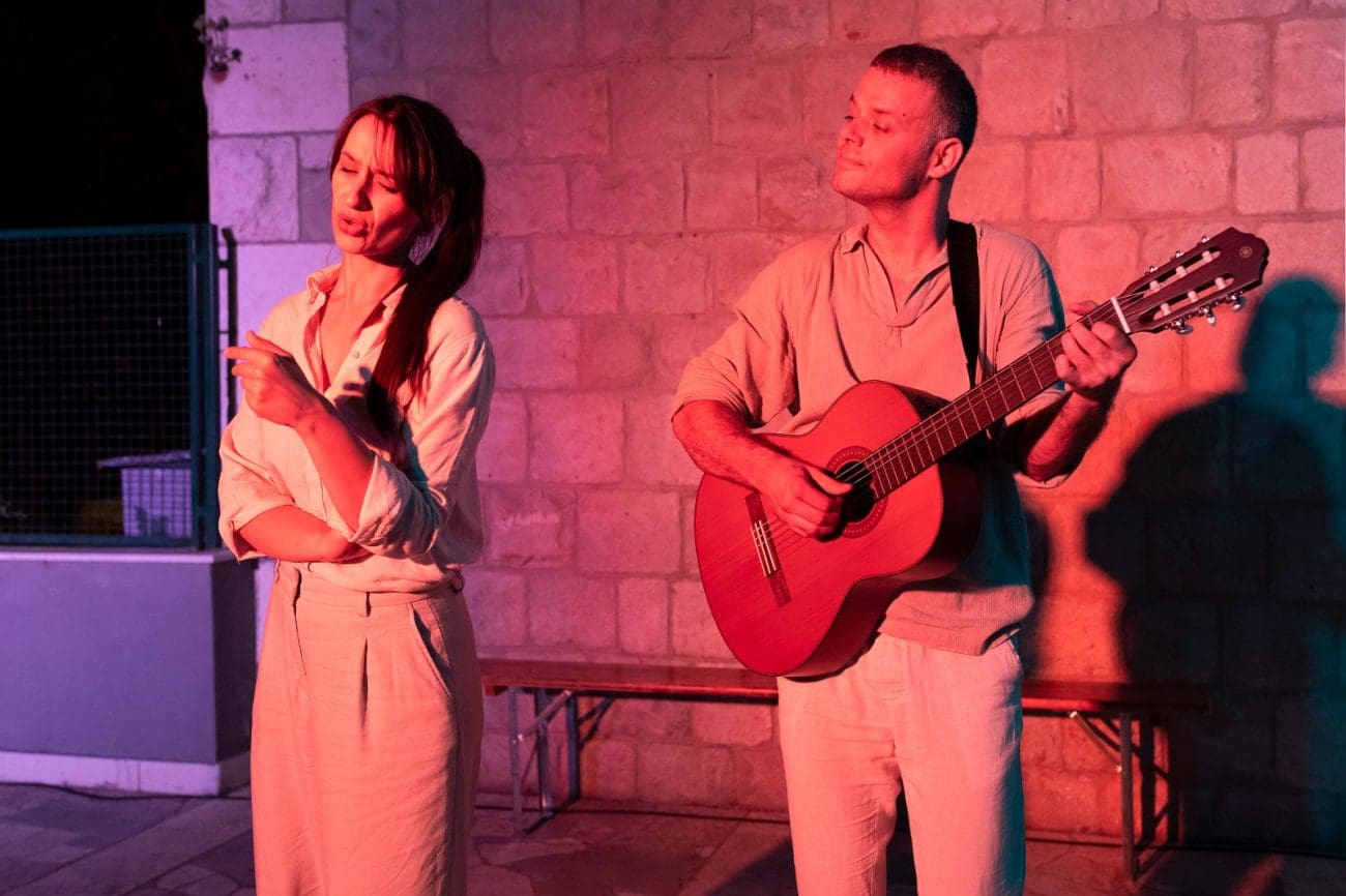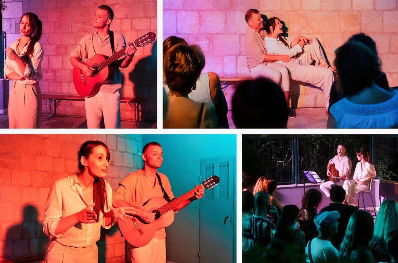 Pohvalno je što se važno mjesto u „Portretu jednoga grada“ ostavilo Marku Maruliću i njegovu prelijepom jeziku, stihu, misli i privrženosti gradu. Katarina Romac još je jednom briljirala kao personifikacija Judite, a Petar Salečić s mnogo je žara i privrženosti pročitao Marulićevo pismo Papaliću, dokaz o ljubavi prema gradu kakav god bio, a „krasan je, iako je napola oštećen“. Salečić je oduševio i u pjesmi „Lipo ime“, i kao pouzdan gitarist, i kao pjevač ugodna baršunasta glasa i dojmljivih visina, odličan i stabilan u tercama s Romac, koju je također lijepo čuti kao pjevačicu u manjem kazališnom sastavu od onih na koje smo naviknuli. Humora nije nedostajao u Macanovim „Lakim ženama“, gdje dežurne ćakulone vijećaju iz koliko je različitih auta i s koliko različitih tipova dežurna „laka“ izišla, peckavo predstavljajući prototip pričljivog ćiribimbaša našega grada – koji se vjerojatno u većoj ili manjoj mjeri krije u svima. Daleko od jeke turističke ponude bučnog centra grada, u simpatičnom i intimnom prostoru Galerije KVART, zaorila se završna pjesma „Furešti su u konfinu“, gdje lišo nisu prošli ni Talijani ni Švabe ni Frančezine, pa ni Inglezi i Česi. Svatko je dobio svoju dozu dosjetljive kritike, uz stalno osjećanje zdrave autoironije.
