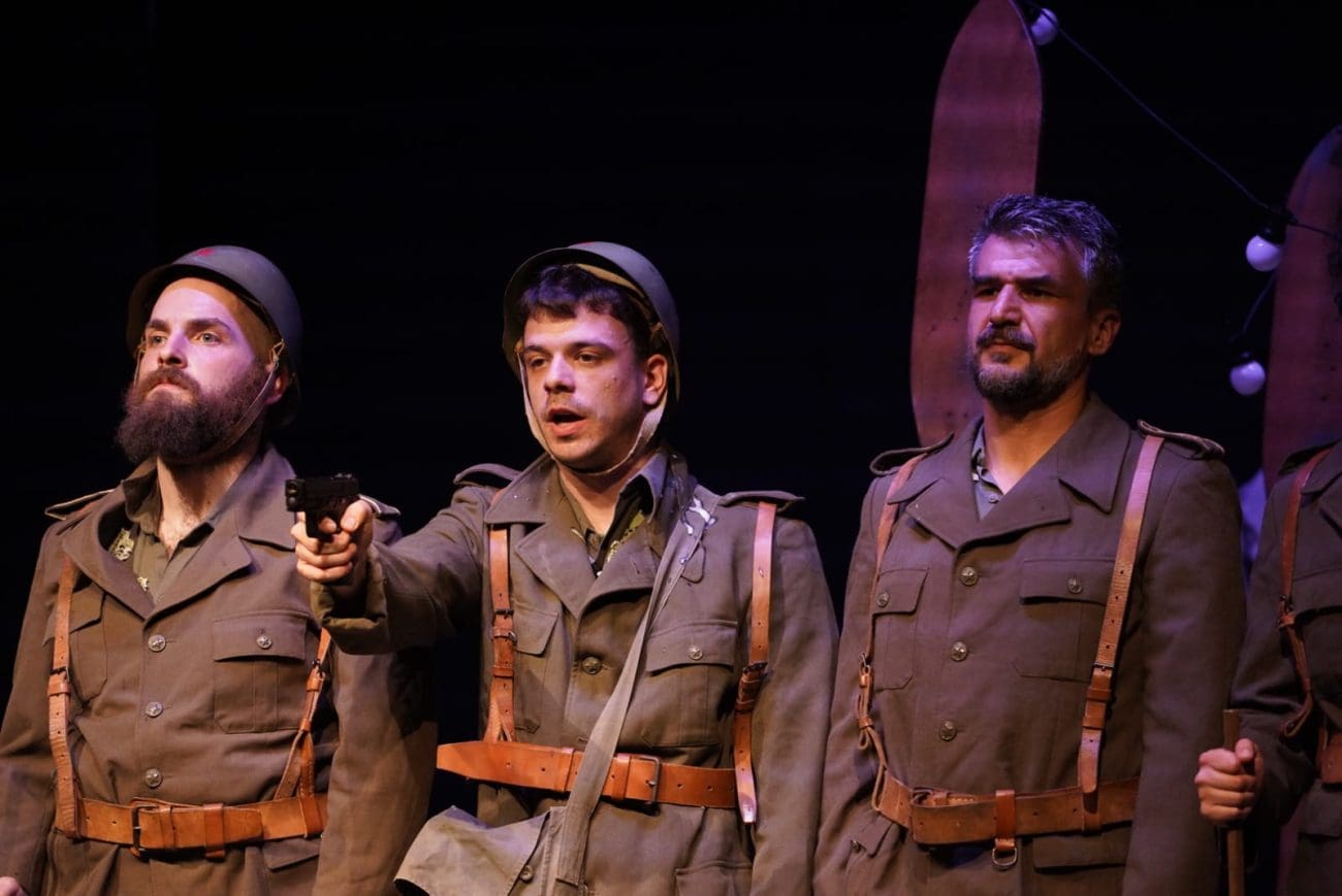 Miloš Kašćelan, 24-godišnjak koji glumi kao da su iza njega desetljeća svjetskih pozornica, do srži je upio svaki svoj zadani pokret, glas i lik. Bilo da se radi o oponašanju njakanja magarca, grotesknom nabrajanju nekadašnjih jugoslavenskih gradova s isticanjem govorne mane, histeričnom kolektivnom pušenju cigarete u trenutku potpuna raspada ratnih ideala ili interpretiranju „Svakidašnje jadikovke“ – mladi je glumac i za scenski govor i za glumu zaslužio ono što promišljen novinar izbjegava raditi, a to je ocjena 10/10. Slaviša Grubiša i Emir Ćatović obračunali su se s političkim svetinjama kako one i zaslužuju – besramno dobrom imitacijom populističkih govora iz kojih na površinu probija nepatvorena mržnja i eklatantno nerazumijevanje koncepta ljudskog dostojanstva. Slaviša Grubiša posebno se istaknuo kao kapetanski glumac u ekipi, sjajan vođa, profesionalac čija je gluma oduševljavajuće prirodna, onaj koji će u najtežim zadacima „popiti prvi metak“ i pripremiti publiku na kazališno iskustvo koje odudara od stereotipa.