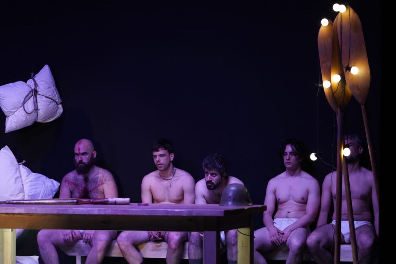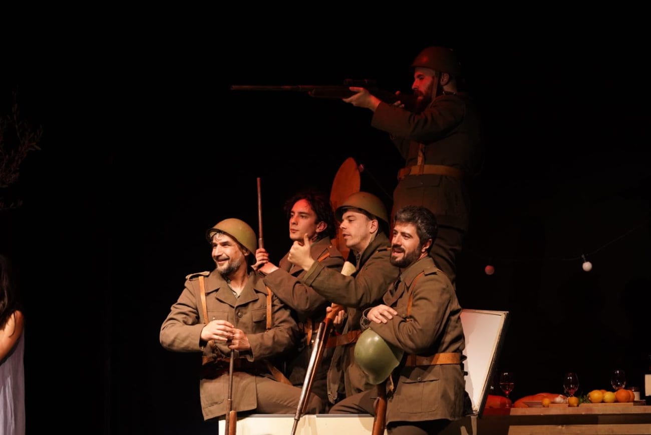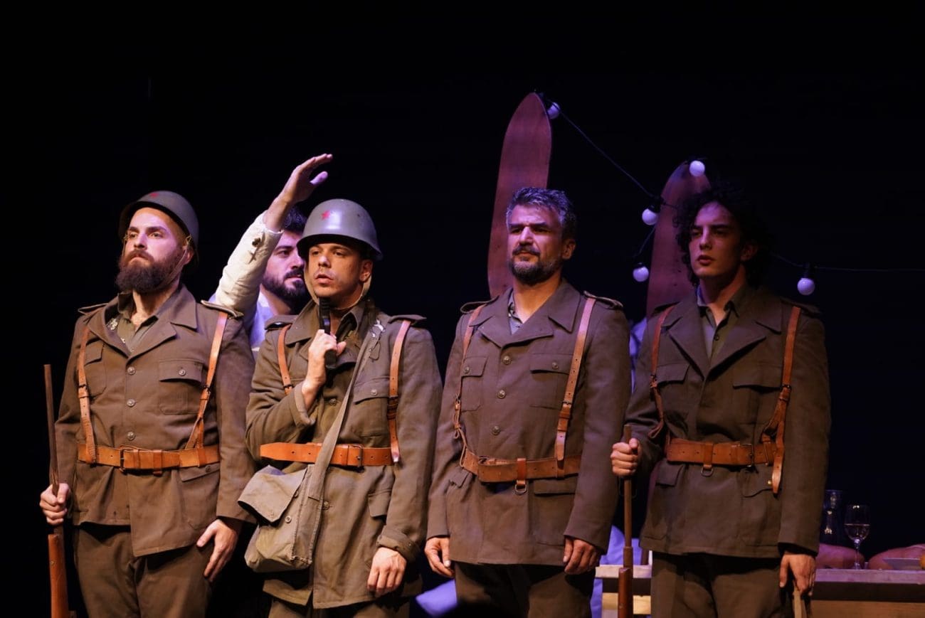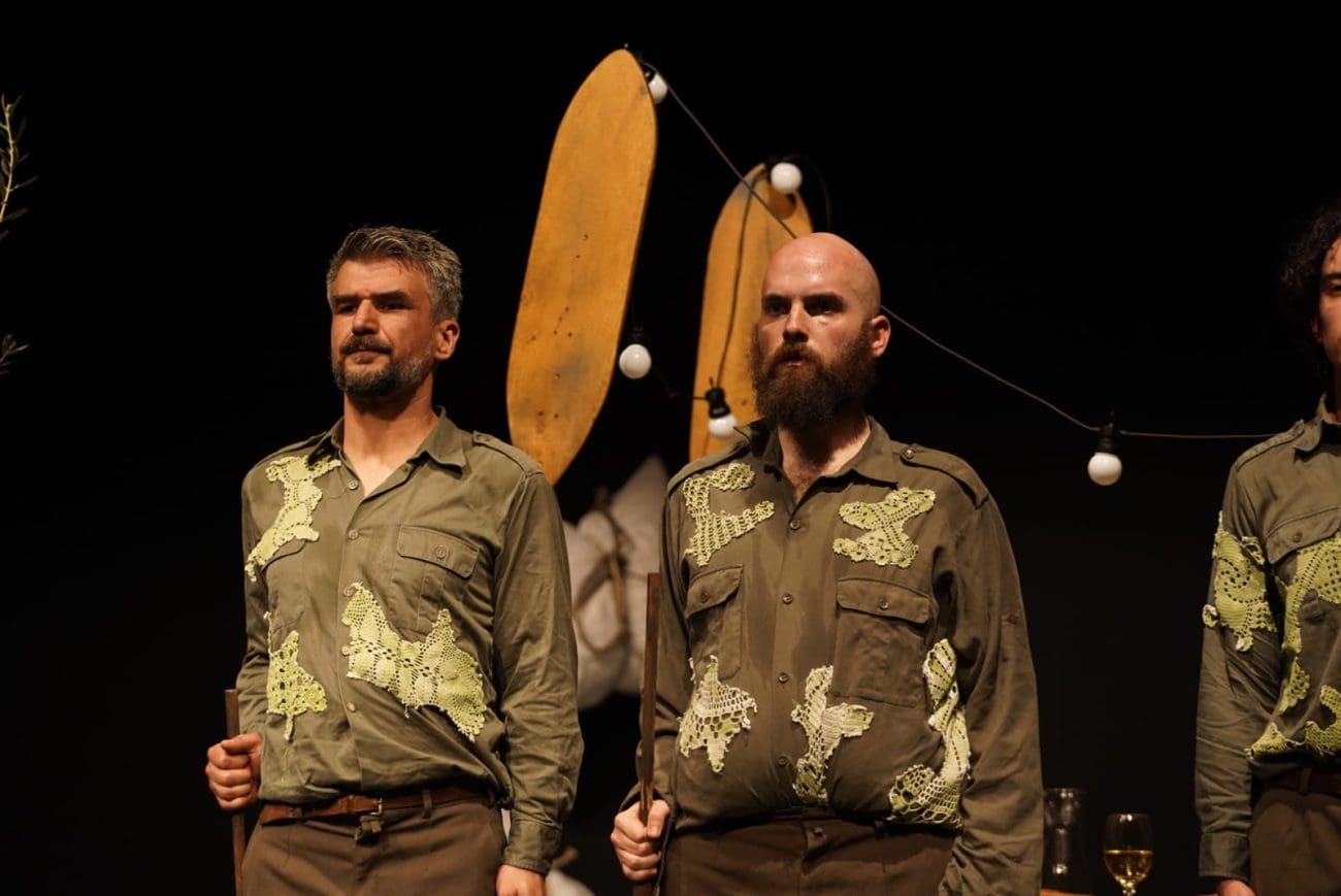 Ironizirajući važnost grandioznih ratnih ličnosti, nakon vica o Hitleru i Titu šaka vojnika pita se – a zašto se uopće ratuje? I onda kostimografski pogodak u sridu – kad Slaviša Grubiša i Miloš Kašćelan u maniri velikana za kakve smo mislili da više ne postoje urone u intertekstualnost (Calvino, Ujević) – pojavit će se vojne odore čiji maskirni dio mijenjaju patchwork tabletići/miljetići. Zvuk granata oblikuje se struganjem kablova o kožu, a admiral (u sjajnoj izvedbi Pavla Prelevića) umire naivno vjerujući da će se ratni suborci povinuti njegovim zapovijedima. Pohod na Dubrovnik posreduje se jezivim i muzikalnim stupanjem, gromkom ritmičnošću koraka i tužnom groteskom gole čovjetine koja će se u ratu skriti u bačvi ili televizoru, a nekad će principom lijeva ruka–desni džep pokušati osigurati kakvu dobit u svijetu koji se gnoji leševima. Kristijan Blečić na svojim je leđima junački iznio posebno potresan prizor kolektivne histerije i navale u kojemu razularena gomila, tobože zaigrana, ne zna stati nakon prvog udarca. Žrtva se time stavlja u poziciju iz koje nema izlaza, a koncept pravde i prava potpuno je poljuljan.