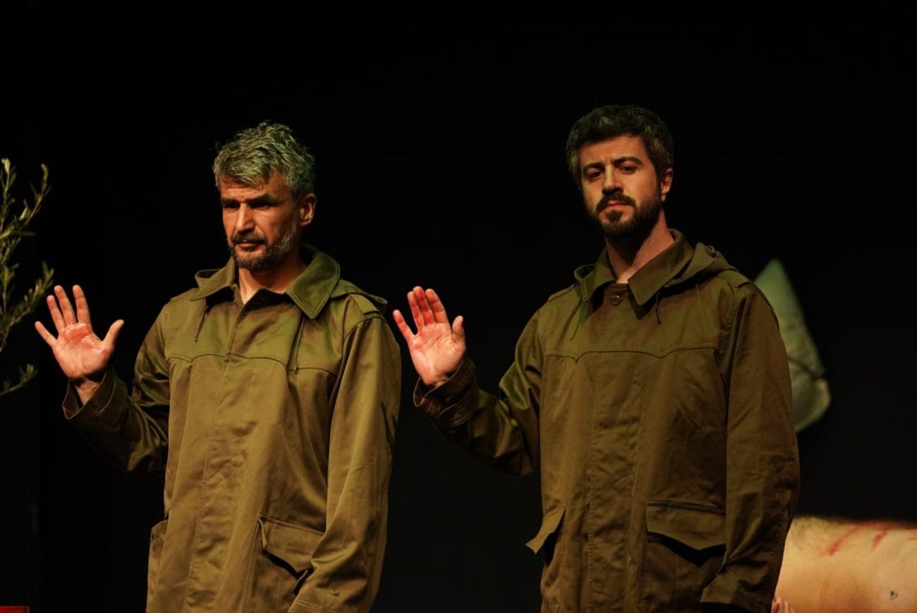 Teško je zorno opisati ansambl u kojem je svaka karika toliko jaka da se oduševljenje i favoriziranje pojedinih glumaca samo pretapa s jednoga na drugoga. Pojedinci su stavljeni u službu predstave, njoj na raspolaganje, dušom i tijelom, predstavi u kojoj nema jednostavnih zadataka. Taksativno nabrajajući naveli bismo ih na desetke, ako ne i stotine. Markantni Emir Ćatović već u prvoj sekundi predstave daje do znanja da svjedočimo uratku koji ćemo pamtiti cijeli život, ušetavši u raskošnoj haljini od crne čipke kao gospođa, udovica ili Smrt – kako već tko percipira sablasnu damu koja krvnički sjecka peršin. Sekundu kasnije ta će se haljina u maestralnu trzaju tijela i promjeni koda hoda pretvoriti u habit, a vojnička kaciga u kadionik s tamjanom. Talentirani mladi Pavle Prelević, koji je splitsku publiku oduševio igrajući u predstavi „Ana Karenjina“ na Splitskom ljetu, i ovaj je put očarao publiku, posebno dosjetljivim komentarima na licu mjesta na krucijalno, a toliko teško pitanje „Zašto volim domovinu?“ Njegov opis umirućeg oca, „kaše od čoveka“ – koji odbija umrijeti pod kundacima u bačvi, ispitujući krvnike zašto su mu ubili sina – vrijedan je naklona, kao i režijsko rješenje koje je u kombinaciji s ekspresivnošću mladog glumca bilo nešto najstrašnije što smo u kazalištu mogli vidjeti.