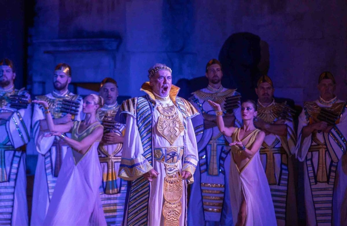 Nakon izuzetno uspješnog otvaranja jubilarnog 70. Splitskog ljeta Orffovom scenskom kantatom „Carmina Burana“, na Peristil je došla i opera-ljubimica splitske publike, Verdijeva „Aida“. 68. je Splitsko ljeto svima još u živom sjećanju, što je za jučerašnju izvedbu, obilježeno nizom nezgoda, ali i otegotnih okolnosti tijekom same pripreme ovog naslova, bio dvosjekli mač. Kristina Kolar kao protagonistica na visini zadatka nešto je za što ćemo se morati uhvatiti kao pozitivnu uspomenu kad se budemo prisjećali ove izvedbe koja je tek blijeda sjena spektakla koji nam je ansambl Opere sa suradnicima priredio na otvaranju, a ni bok uz bok s prethodnim „Aidama“ ne bi dobro prošla.