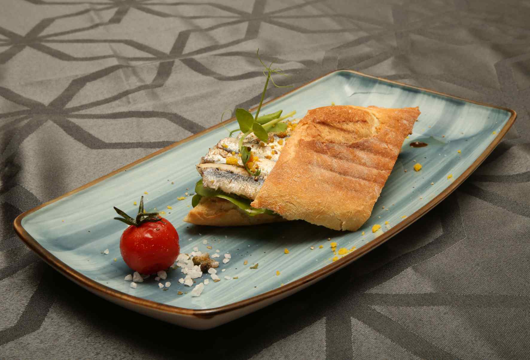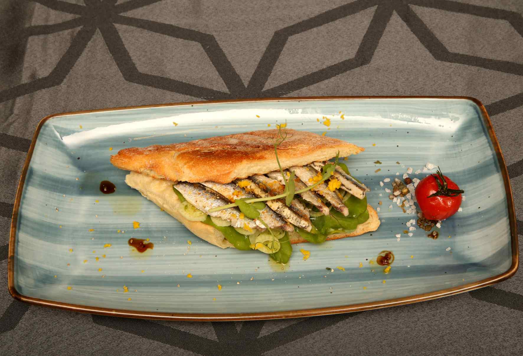 Ovako pripremljenu ribu prilikom serviranja ocijedite, složite na tanjur, pa začinite maslinovim uljem, kvasinom, cvijetom soli, kaparima i maslinama.