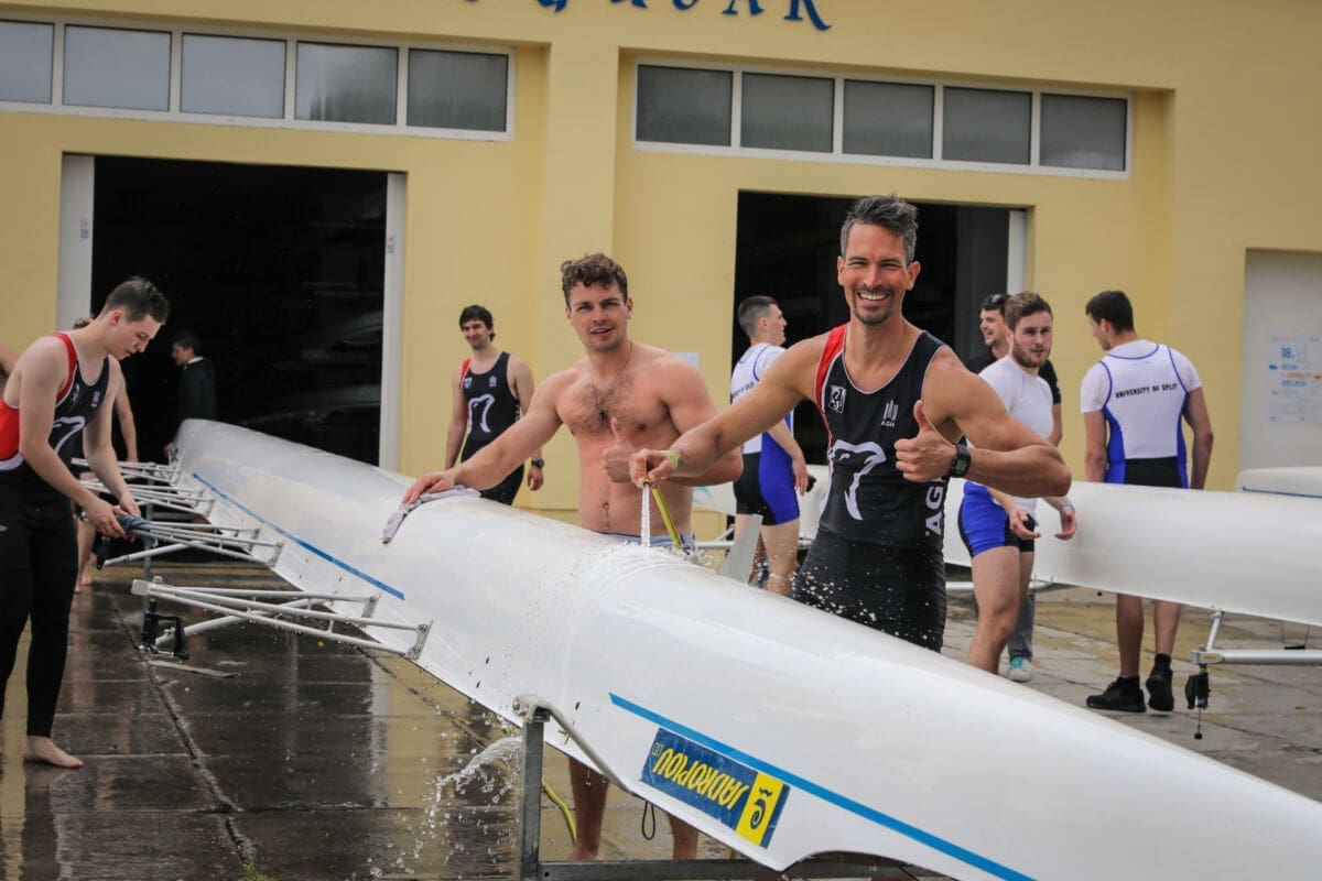 Uz Cambridge i Oxford, odličjem brončanog sjaja u muškoj konkurenciji okitila se ekipa sveučilišta iz njemačkog Aachena, koja je inače 2016. godine slavila u ovoj utrci, tako po prvi puta zbacivši moćne Engleze s trona. Četvrto mjesto danas je pripalo odličnoj domaćoj posadi Sveučilišta u Splitu, peto Akademiji Gorniczo-Hutnicza iz Krakova, dok je šesto mjesto zauzela ekipa Medicinskog fakulteta Sveučilišta u Zagrebu.