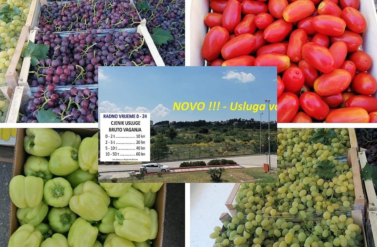 No, nije samo to važno. Nakon dvadeset godina, opet je u funkciju stavljena kolna vaga, najveća na ovom području jer sa svojih 18 metara koliko je duga, uslugu vaganja može pružiti najvećim šleperima i kamionima s prikolicom do 50 T. Najskuplje vaganje, upravo tih najvećih šlepera iznosi svega 60 kuna sa PDV-om, a vaganje osobnih automobila do 2 tone, svega 10 kuna. Usluga vaganja je za sve vrste tereta, a NE samo voće i povrće, i to za fizičke i pravne osobe.