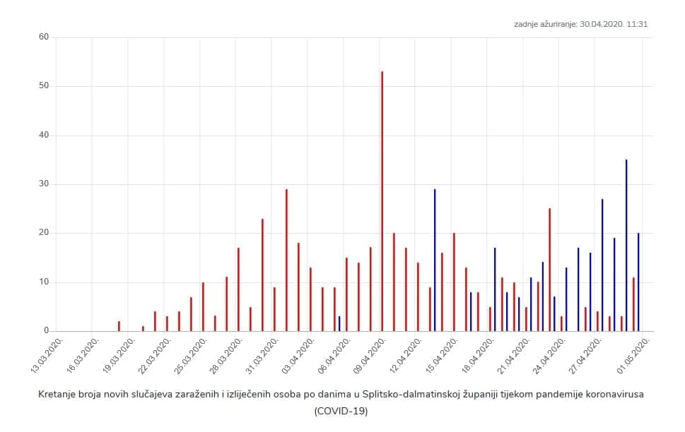 Na području Splitsko-dalmatinske županije do sada je zabilježeno 497 slučajeva zaraze korona virusom.