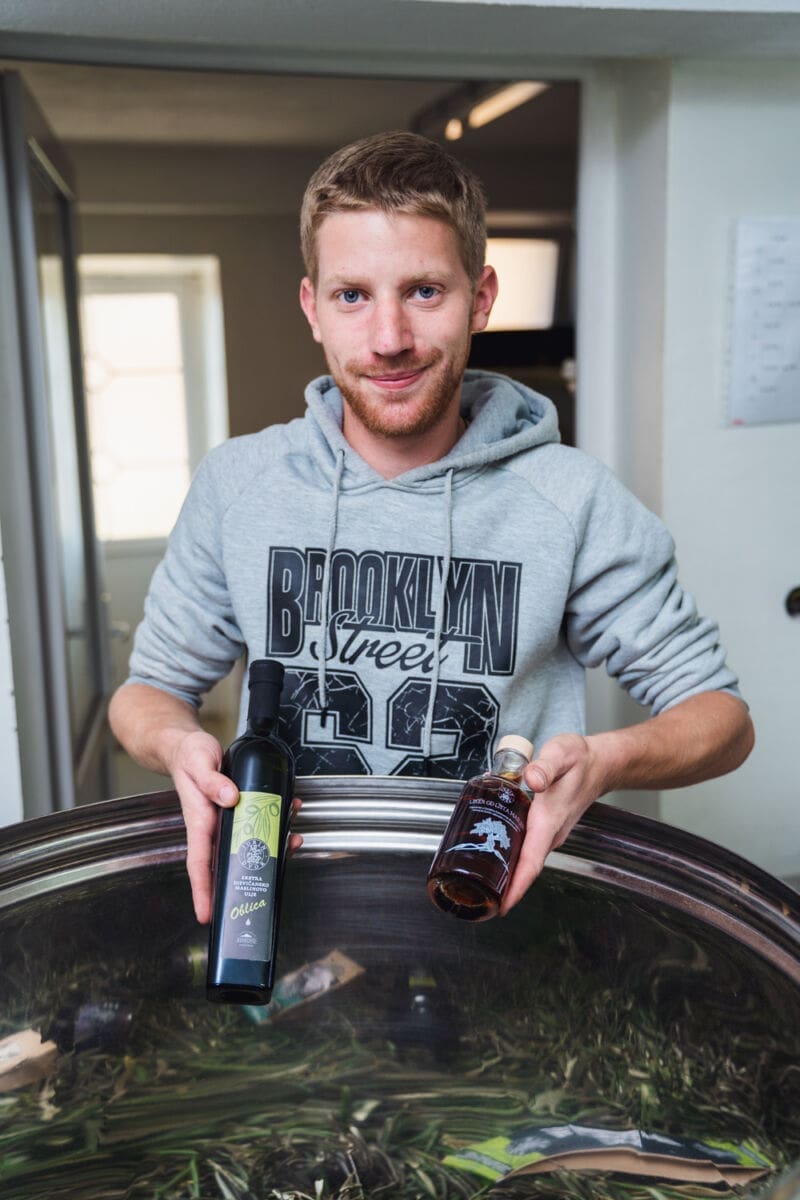 Od maslina primarno, naravno, radimo ulje i od tri vrste - oblice, leccino i miješano. Zatim radimo namaze od crnih i zelenih maslina, konzerviramo crne i zelene masline, radimo čaj od lista masline, liker od lista masline, a vrlo je tražen i naš čaj od kadulje - kazao nam je uvodno Andrej Vukušić.