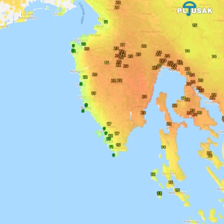 Slična situacija kao u Zagori vlada i u zaleđu Kvarnera i unutrašnjosti Istre. Tamo je ponegdje već izmjereno 24°C.