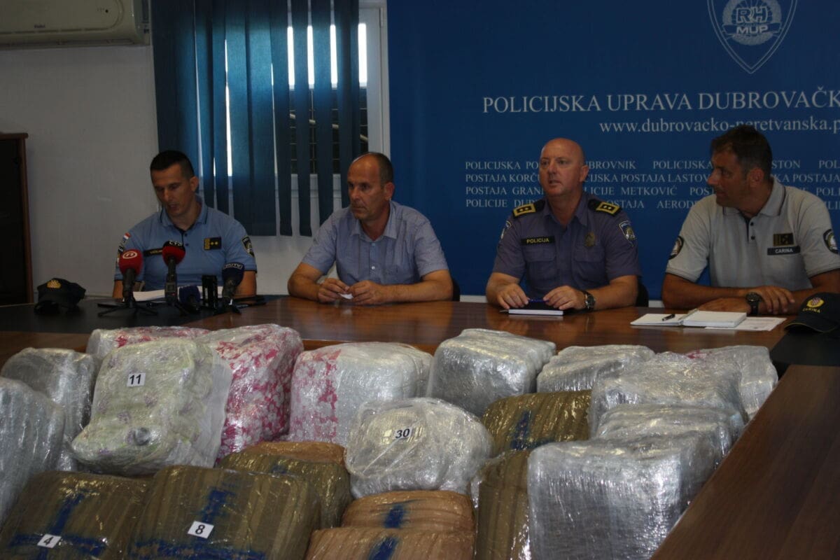 U Policijskoj upravi dubrovačko-neretvanskoj danas je održana izvanredna konferencija za medije povodom zapljene veće količine droge marihuane na Međunarodnom cestovnom graničnom prijelazu Karasovići.