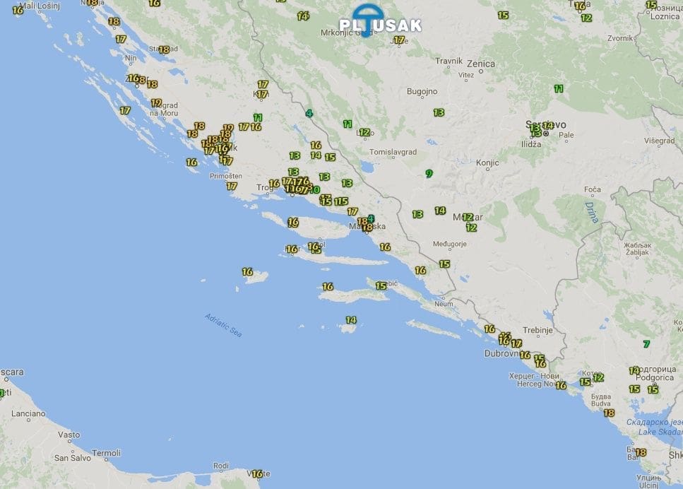 Ipak, prava toplina mogla se osjetiti danju. Prema podacima mreže automatskih meteo postaja Pljusak.com, najviše dnevne temperature zraka bile su tijekom ponedjeljka od 13 do čak 19 Celzijevih stupnjeva.