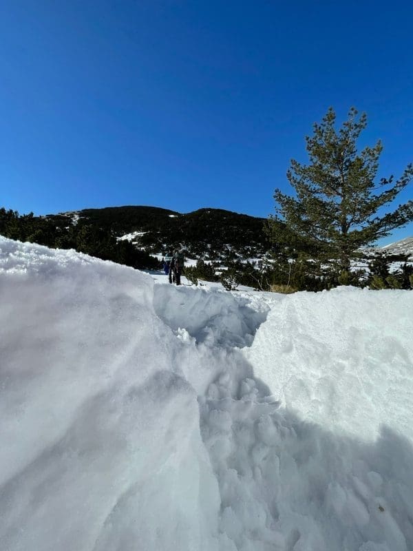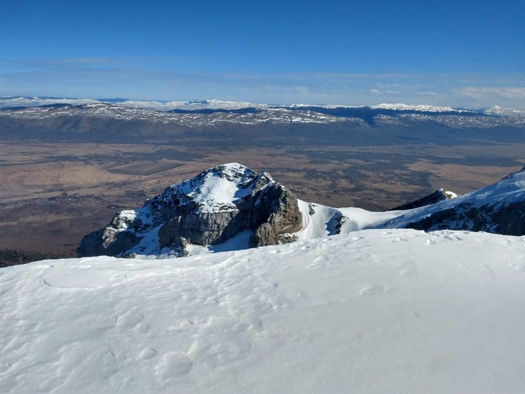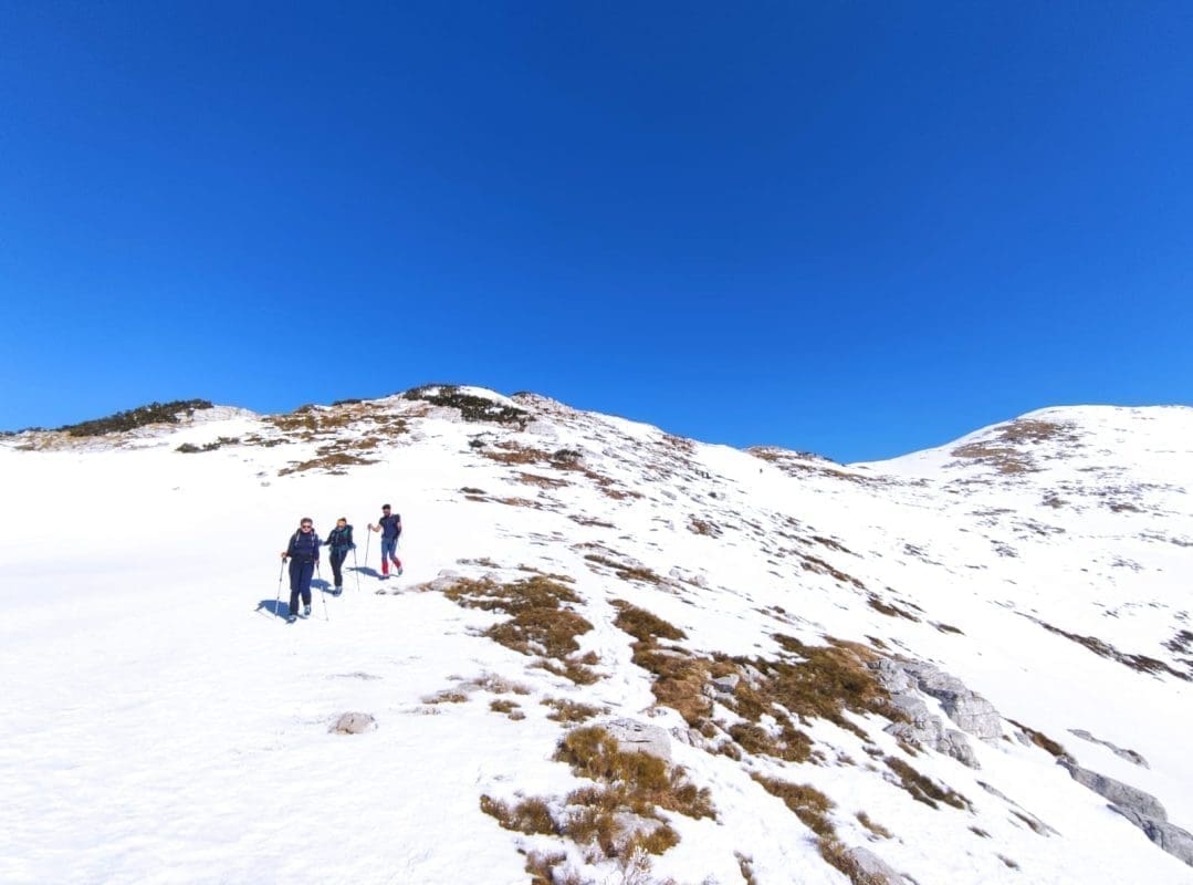 Planinarenje do najvišeg vrha Dinare od ovog skloništa traje približno 90 minuta, a za razliku od uspona do skloništa, sada je vladala prava bonaca, između bure koja je utihnula i juga koje će za koji sat zapuhati. Mjesečina je dala dodatnu čaroliju ovom usponu. Snijega ima znatno manje od uobičajene zimske situacije, no zadnjih 200 metara ispod vrha potrebne su dereze.