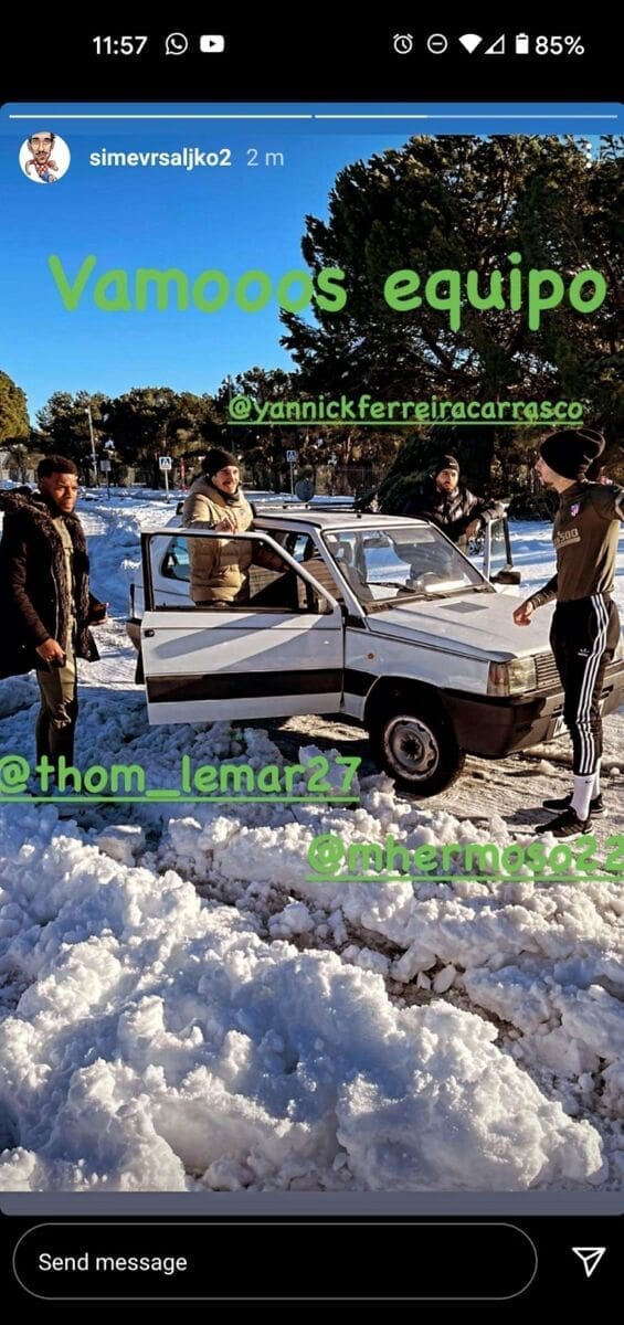 Šime Vrsaljko objavio je na Instagramu kakvim prijevoznim sredstvom je došao na trening Atletica u snijegom prekrivenom Madridu.