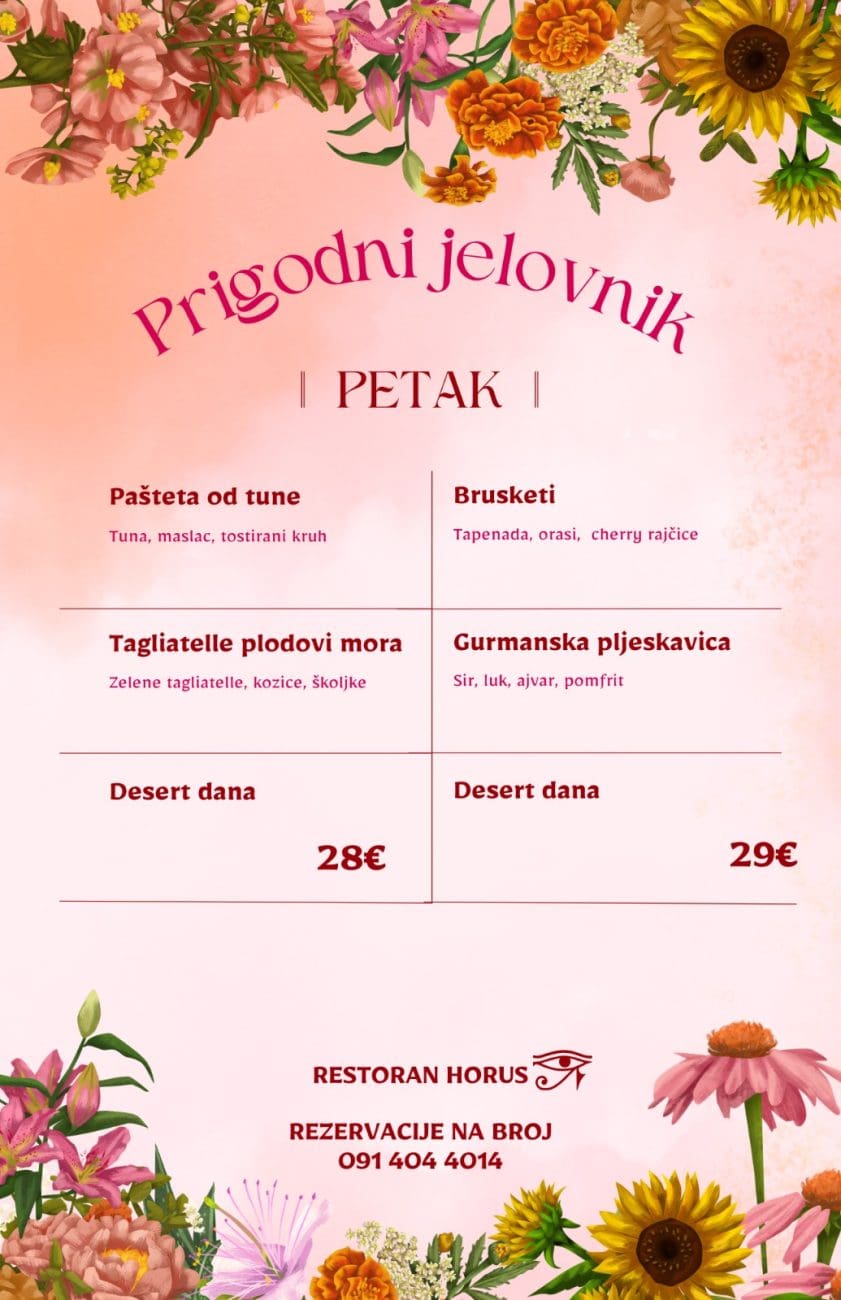 Restoran Horus u kampu u Stobreču poziva sve na početak novog tjednog rituala muziku uživo svaki petak! Prvi takav događaj održat će se 28.03.2025. u 19 sati. Svaki petak bit će prilika za uživanje u živim nastupima, uz dva posebna menija po akcijskim cijenama i fantastične popuste na vina.