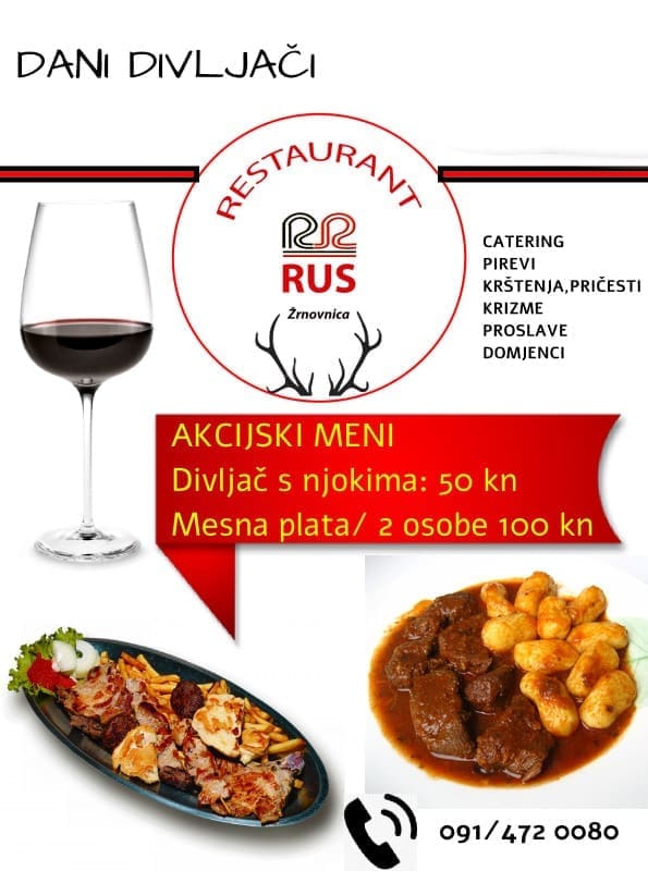 Tijekom siječnja u Rusa se tražila porcija više, poseban recept spremanja divljači oduševio je sve koji su ga kušali. Nema sumnje, restoran s tako bogatom tradicijom i ovoga će vikenda biti pun, stoga na vrijeme rezervirajte stol i svoje porcije!