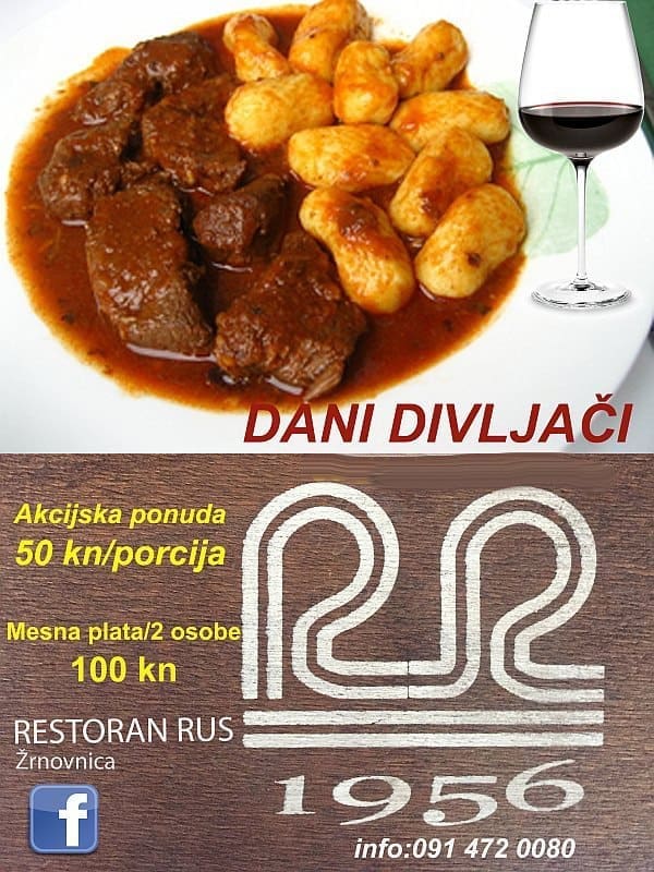Posljednja dva vikenda u Rusa se tražila porcija više, poseban recept spremanja divljači oduševio je sve koji su ga kušali. Nema sumnje, restoran s tako bogatom tradicijom i ovoga će vikenda biti pun, stoga na vrijeme rezervirajte stol i svoje porcije!