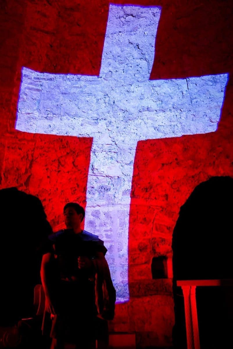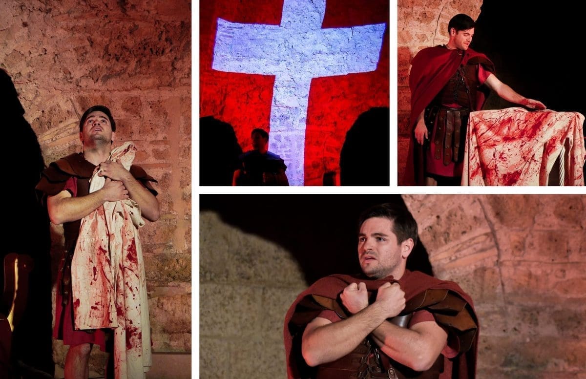 U komornoj, pomalo klaustrofobičnoj atmosferi kripte svete Lucije, za koju je i sam Eranović izjavio da je prikladna za oslikavanje ambijenta katakombi u kojima su se sastajali kršćani, šačica sretnika svjedočila je prvoj izvedbi ovog iznimno vrijednog djela. Hladni kameni zidovi, jeziva pratnja rimske straže, turobna glazba, svjetlo koje se prelijeva iz jasne bijele u krvavu crvenu, jedan zamišljeni rimski centurion i jedna krvlju uprljana bijela tunika – naoko skromno okružje, a zapravo sve što je trebalo za maestralnu izvedbu priče koja se svake godine iznova čita, sluša i interpretira – često, nažalost, na uvijek isti „zdravo za gotovo“ način.