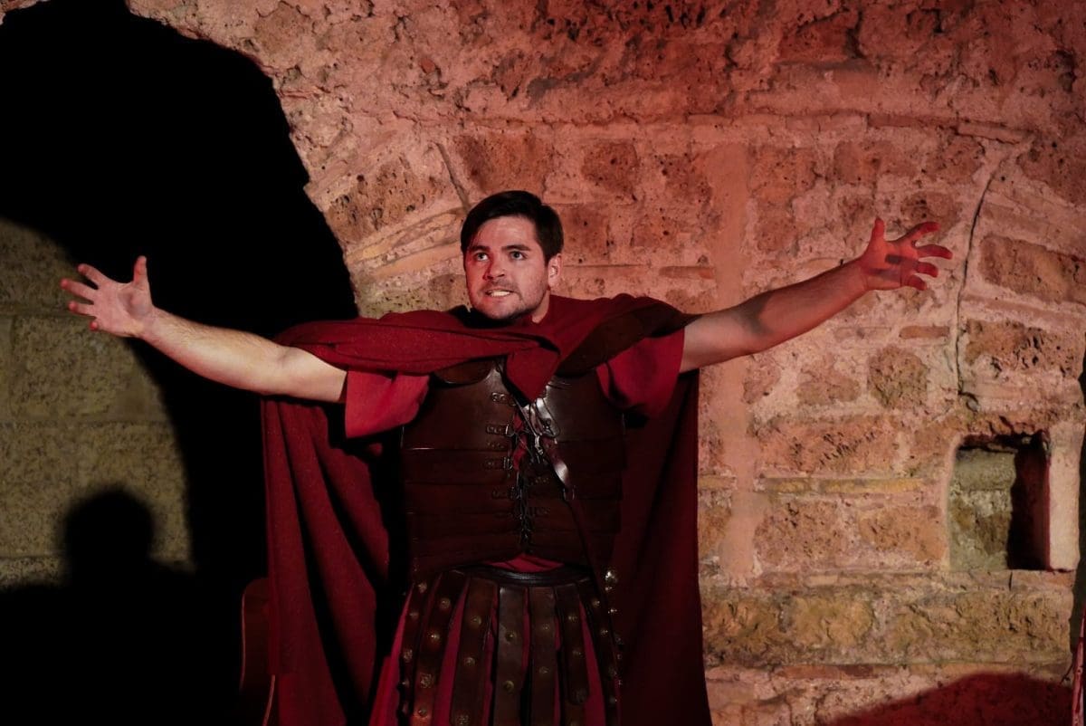 Glumac Pere Eranović sinoć je u kripti svete Lucije predstavio monodramu „Bio sam tamo“ nastalu prema motivima romana „Tunika“ Loyda C. Douglasa. Eranović, koji je u ovome projektu Kazališne družine „Ritam igre“ i redatelj i jedini glumac, kroz lik rimskog centuriona Marcela Galija pripovijeda priču o Velikom petku. Njegova je uloga dvojaka – isprva je, na svoje kasnije žaljenje, bio jedan od egzekutora „mjesnog revolucionara“ Isusa Nazarećanina, a kasnije se transformira u čovjeka duboko pogođena smrću pravednika i pripovjedača najslavnijeg, ali i najtužnijeg ubojstva u povijesti.