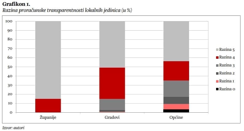 Gledano po županijama, općine su najtransparentnije u Požeško-slavonskoj (4,6) te Koprivničko-križevačkoj i Primorsko-goranskoj (obje 4,5), a najnetransparentnije u Splitsko-dalmatinskoj (2,7) i Dubrovačko-neretvanskoj (2,9).
