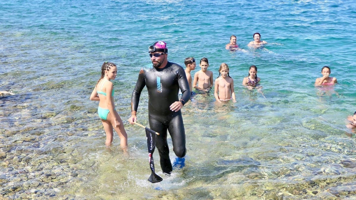 Domagoj Jakopović Ribafish danas je u sklopu projekta RokOtok plivao od Drvenika do Okruga Gornjeg.