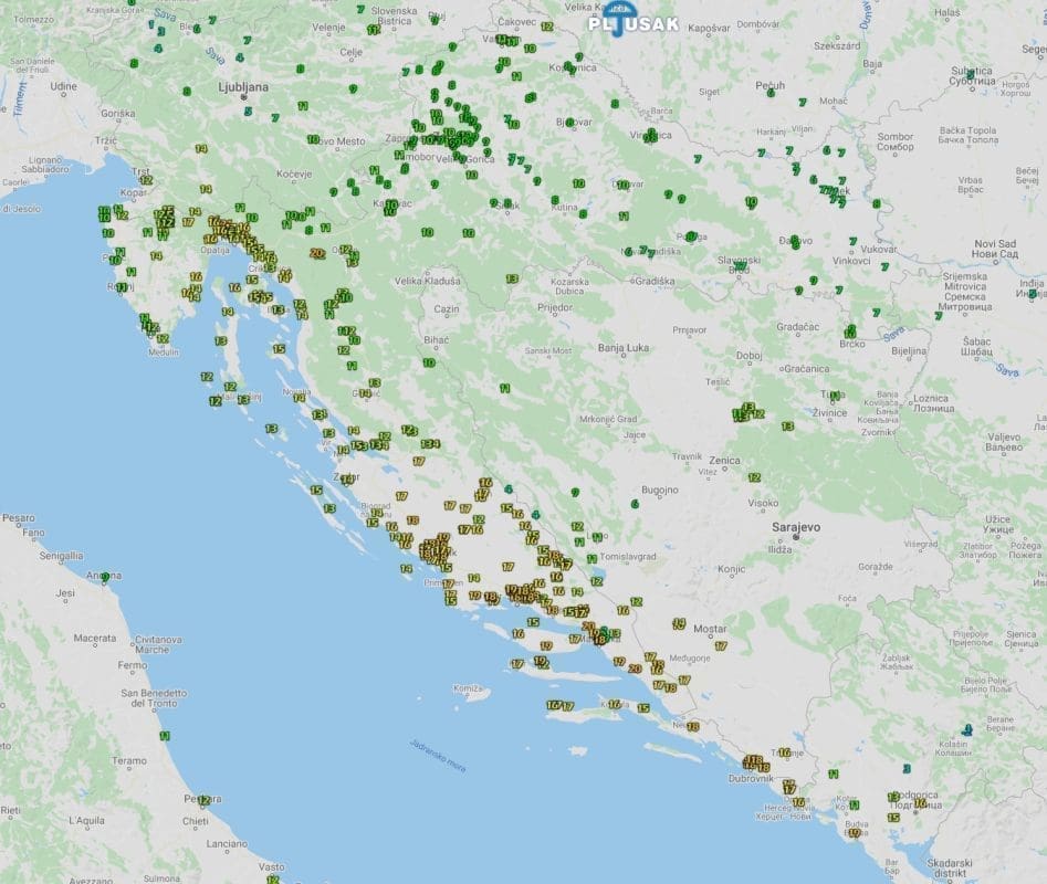 Dalmacija je u četvrtak bila najtopliji dio zemlje. Prema službenim podacima DHMZ-a, najviše dnevne temperature zraka dosezale su čak 19°C, koliko je izmjereno u Makarskoj. Dubrovnik je mjerio 18,6°C, splitski aerodrom u Kaštel Štafiliću 18,5°C. 18°C je izmjereno u Hvaru i Pločama, 17°C u Kninu i Šibeniku...