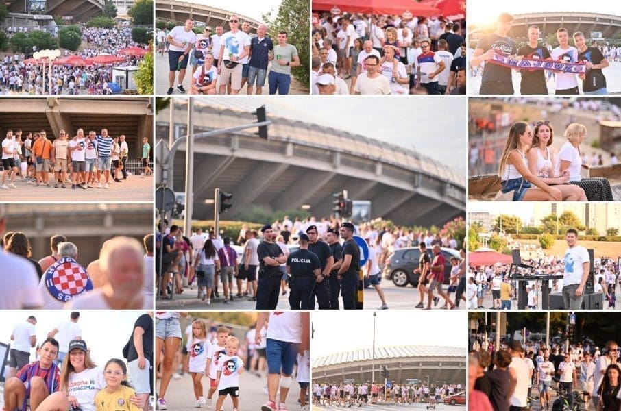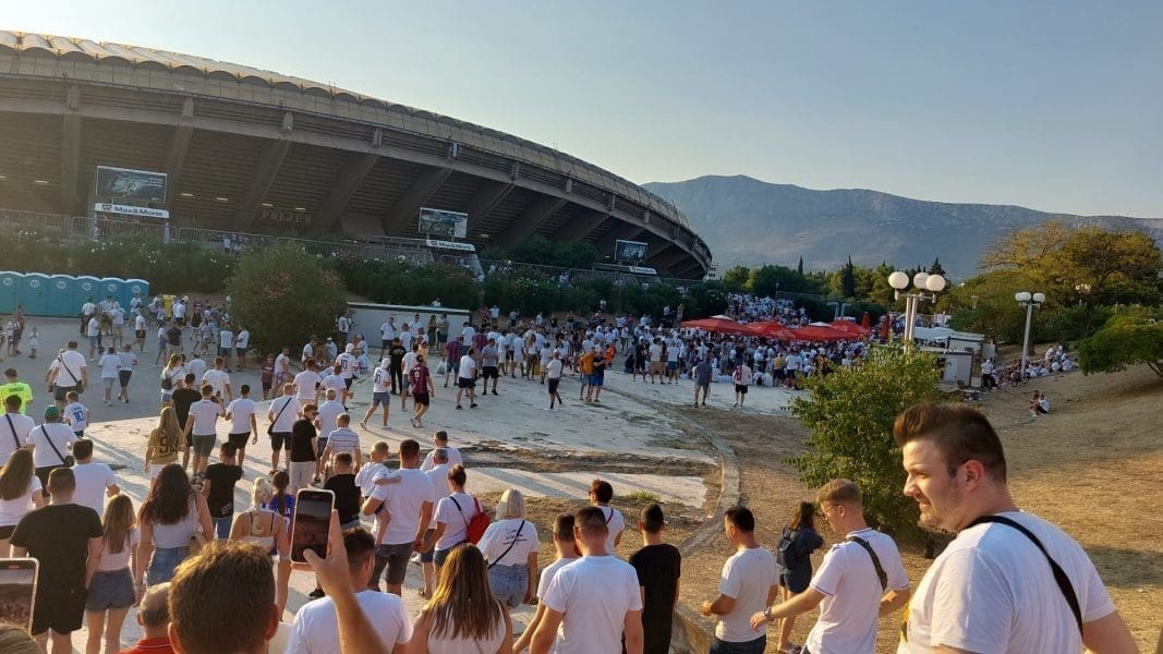 Još je manje od dva sata ostalo do utakmice na Poljudu, a navijači se polako s Rive sele na Poljud. Više od 30 000 'Bilih' napunit će večeras tribine Poljuda.