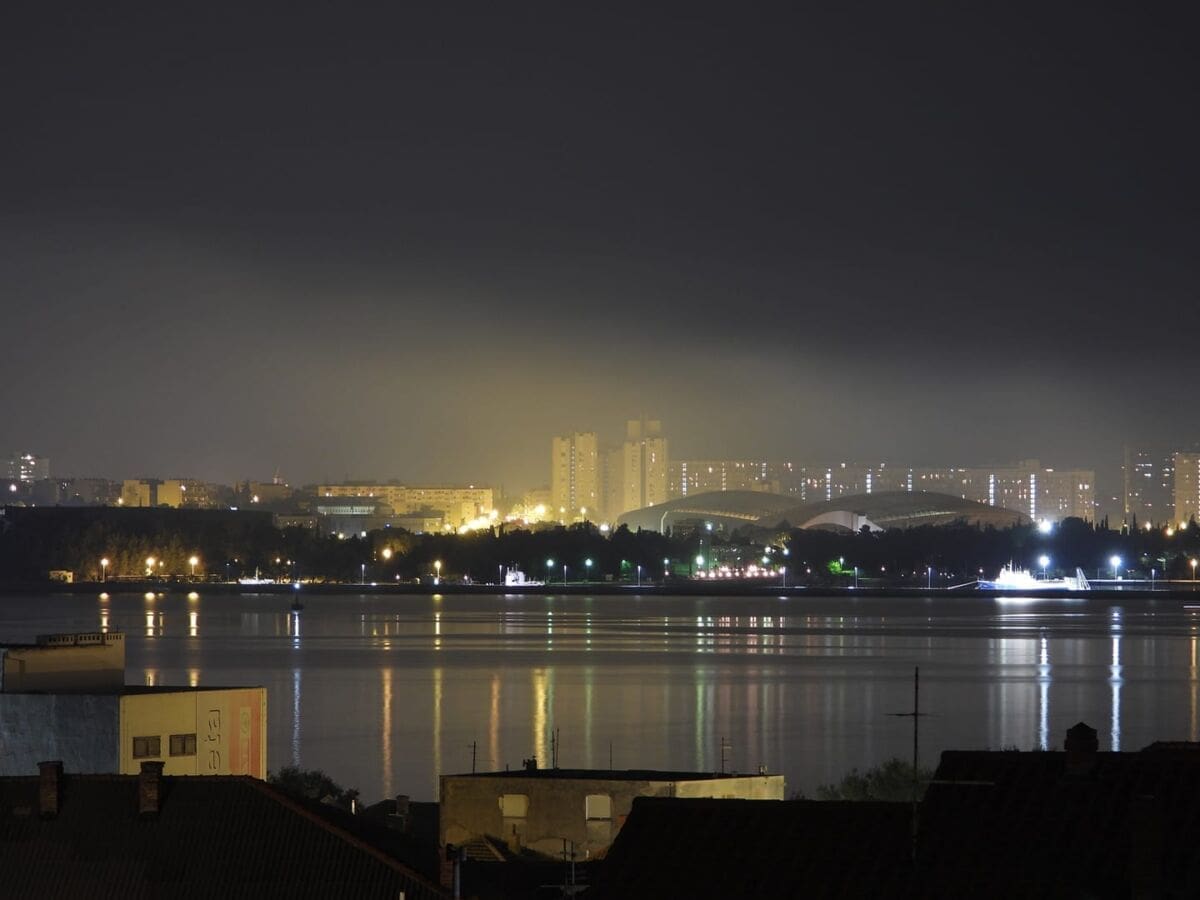 Noć je donijela i nagli porast relativne vlažnosti zraka, odnosno udjela vodene pare u zraku. U Splitu se sasvim približila visokih 90 posto što je rezultiralo pojavom magle i sumaglice u dijelovima grada.