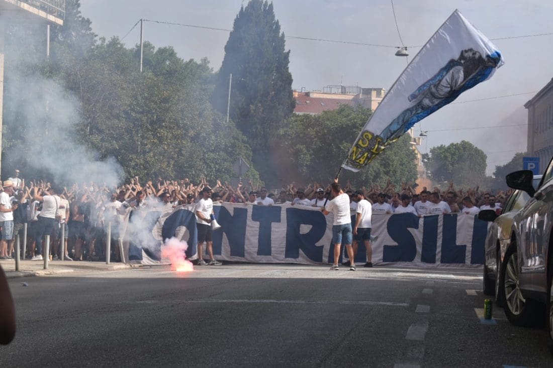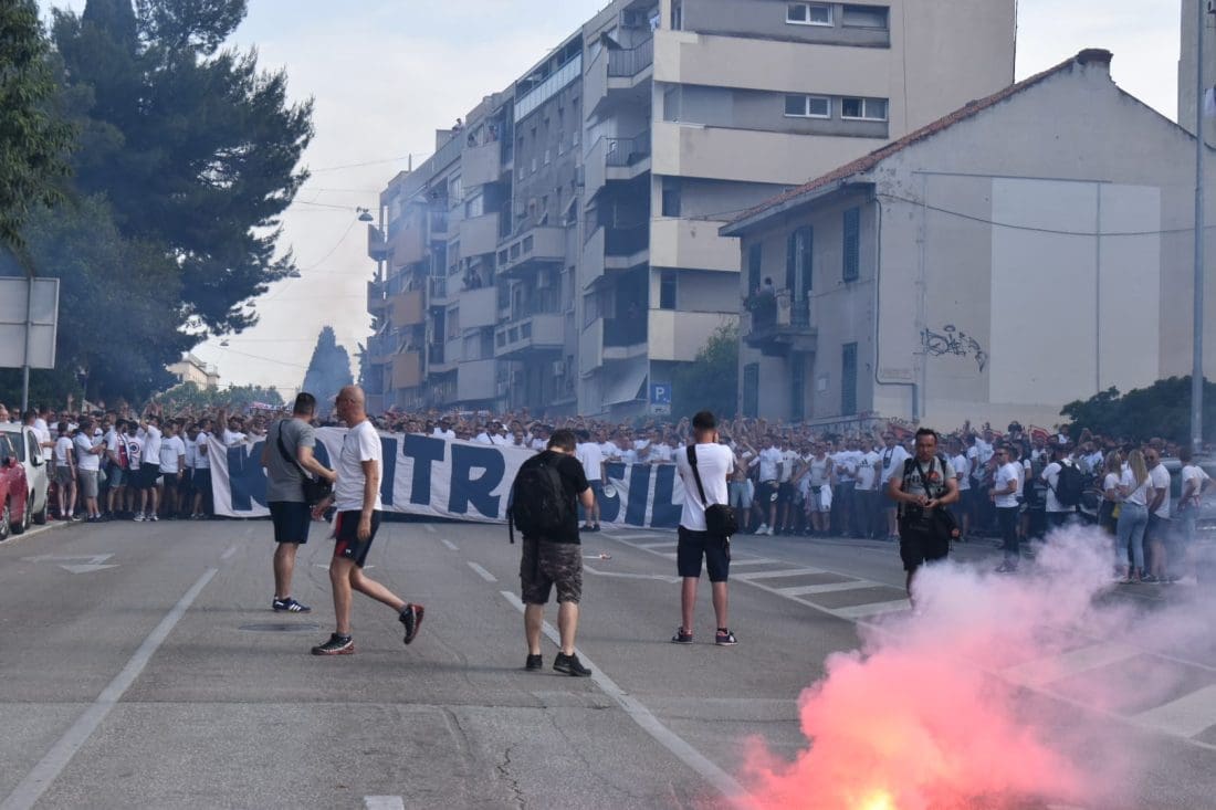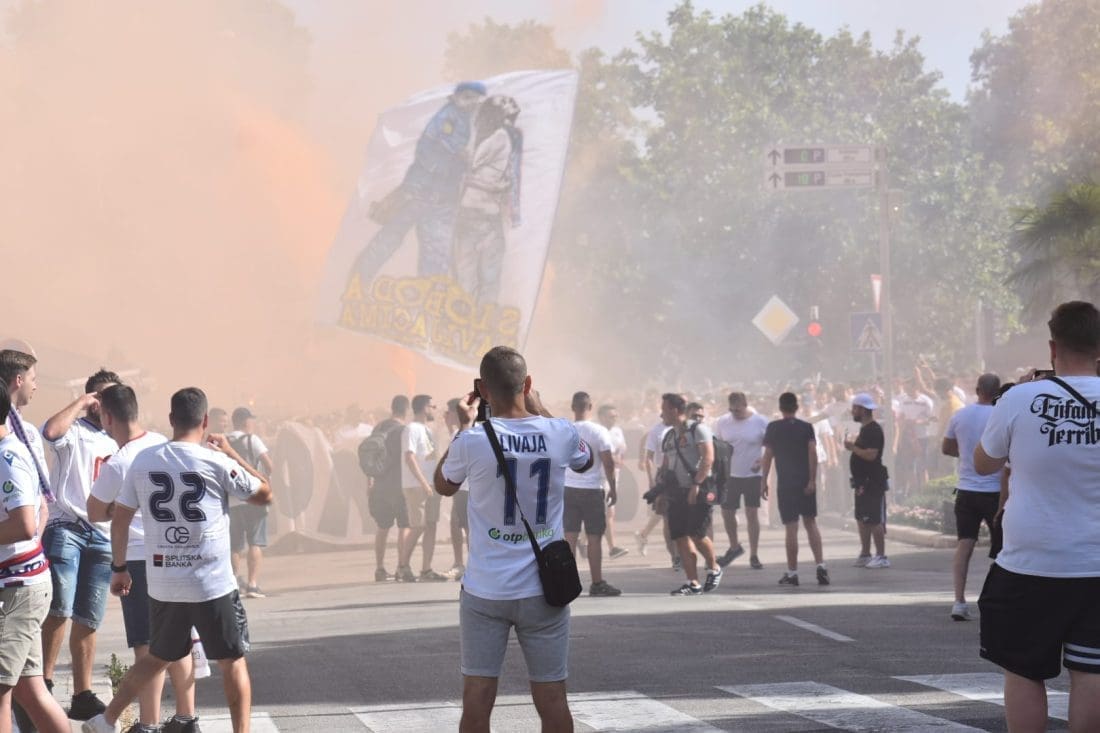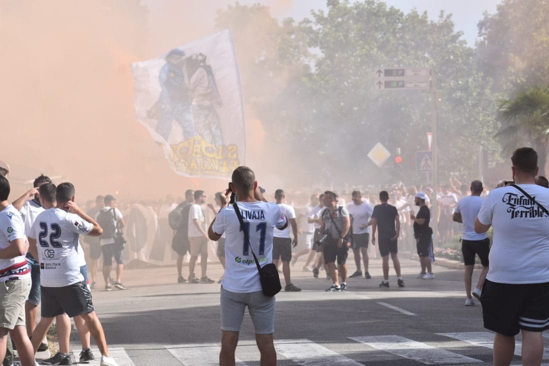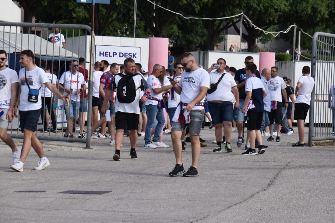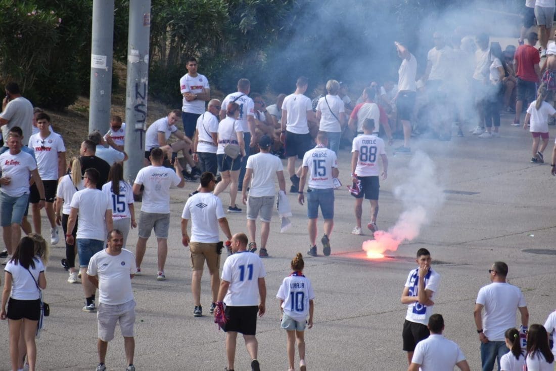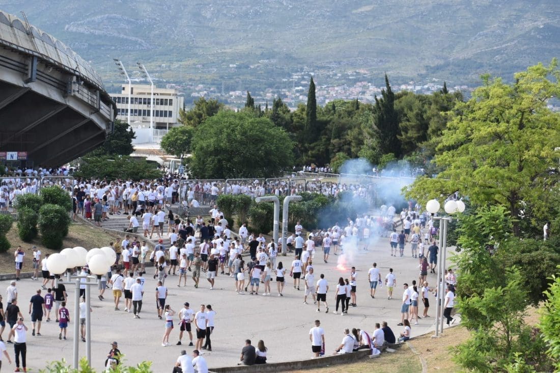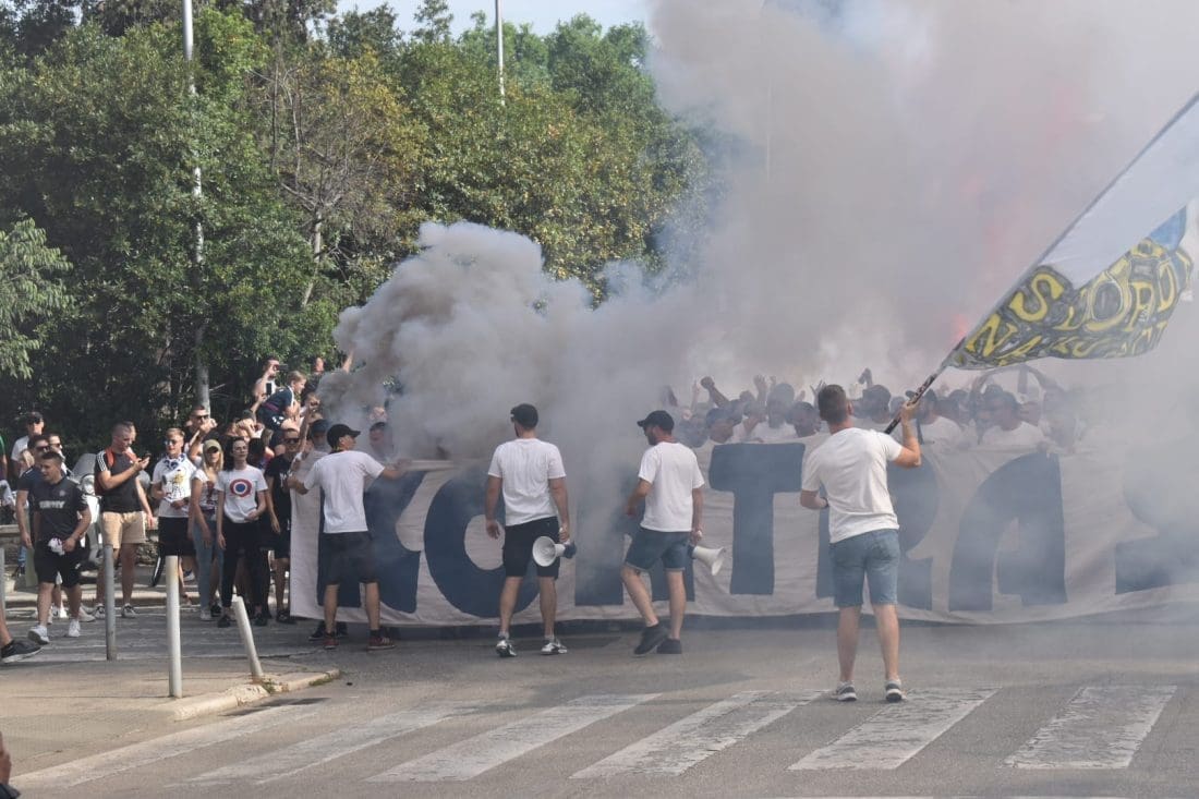 Kako smo već ranije pisali, Torcida je stigla ispred stadiona. Pjevali su i palili su baklje od centra grada pa sve do stadiona. Već dosta navijača ušlo je na stadion, a mnogi od njih su na ulazima i strpljivo čekaju svoj red.