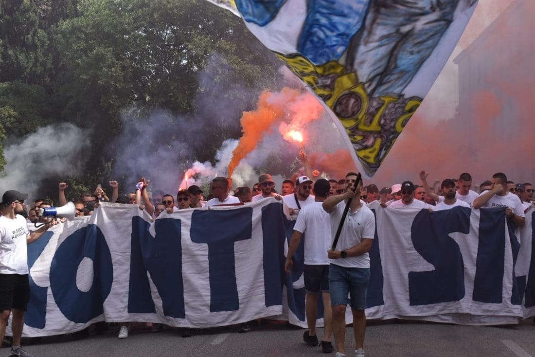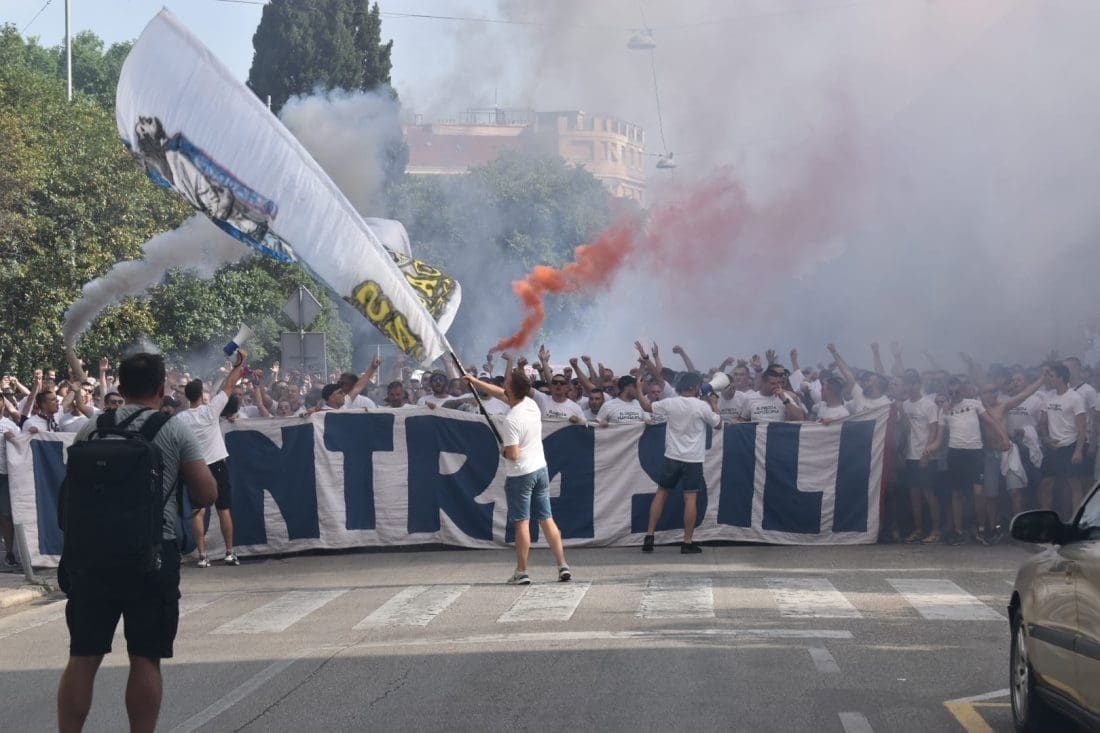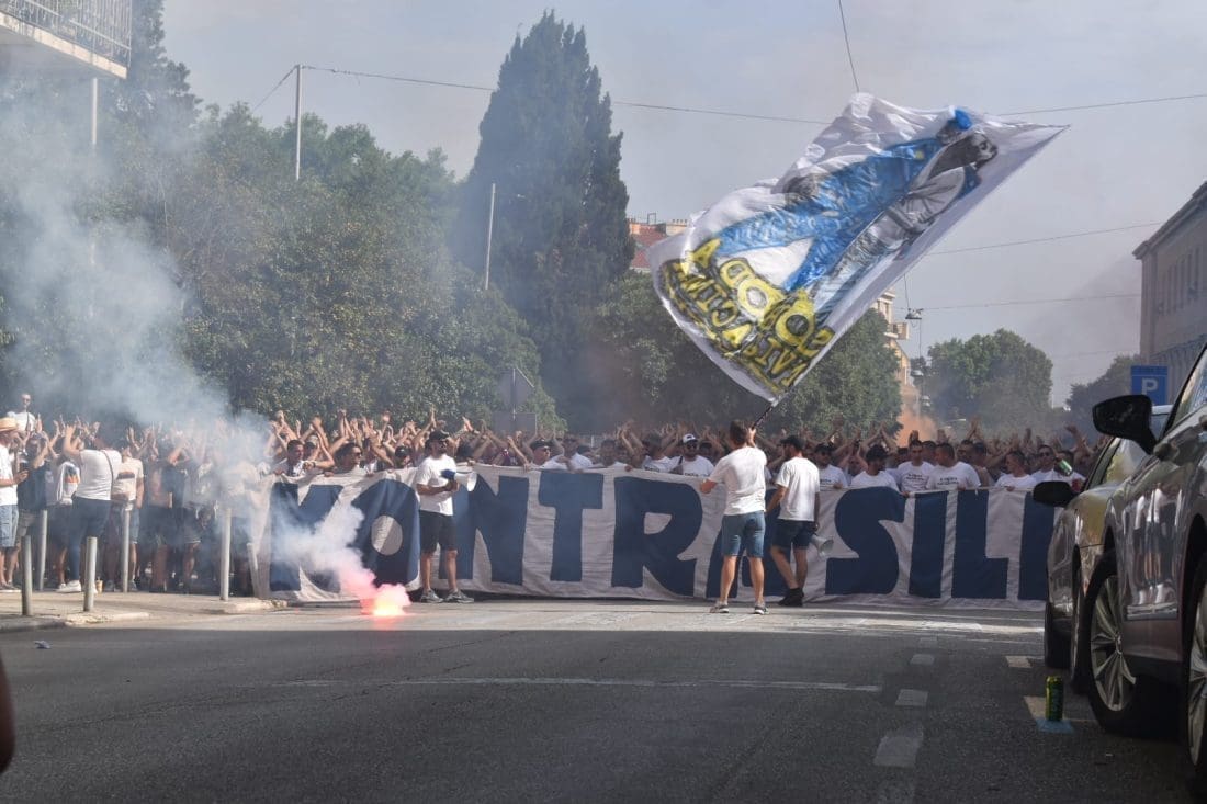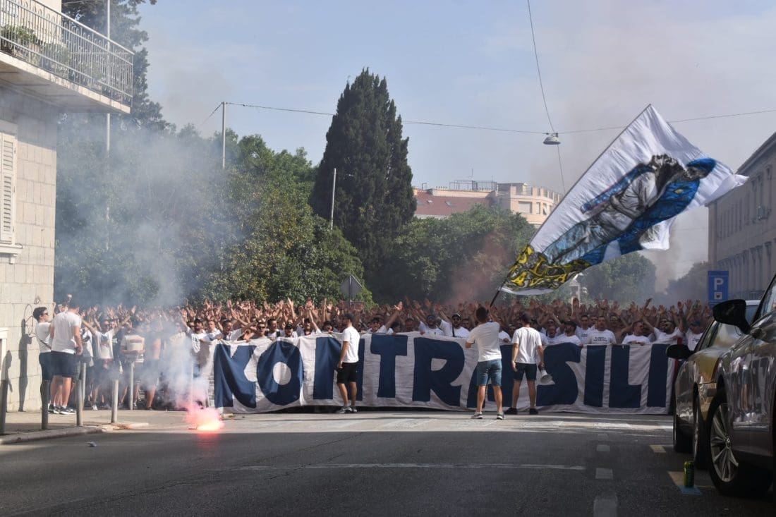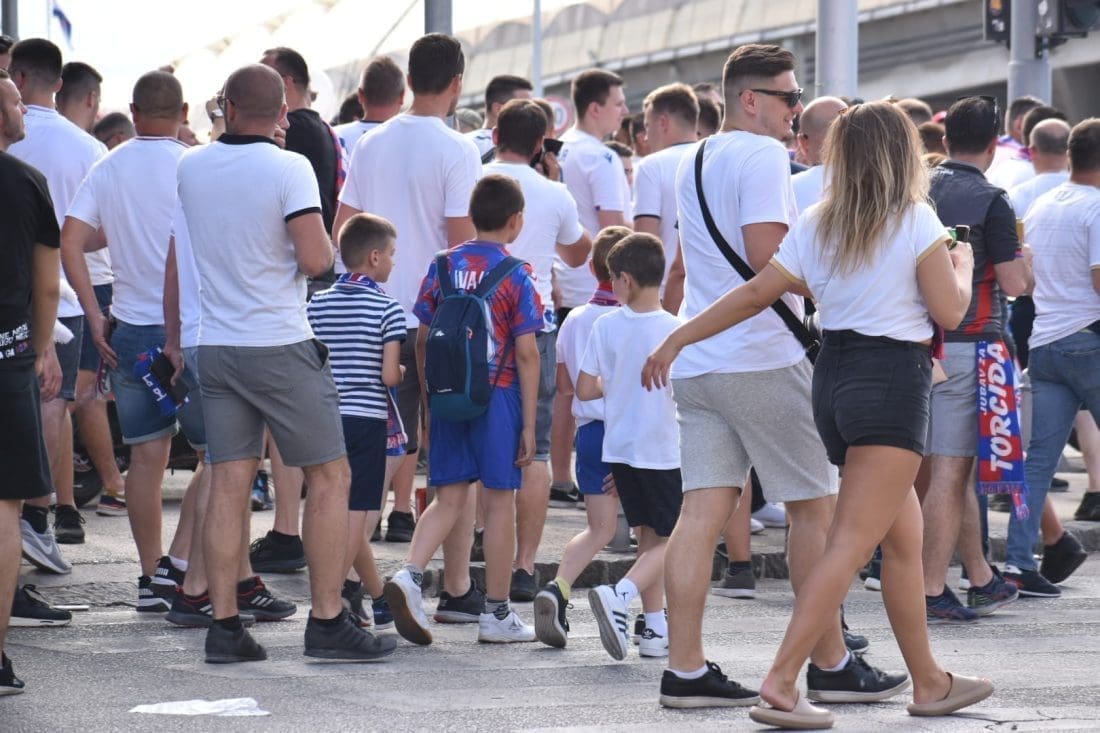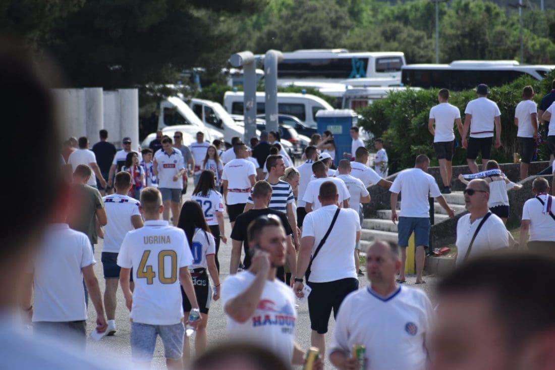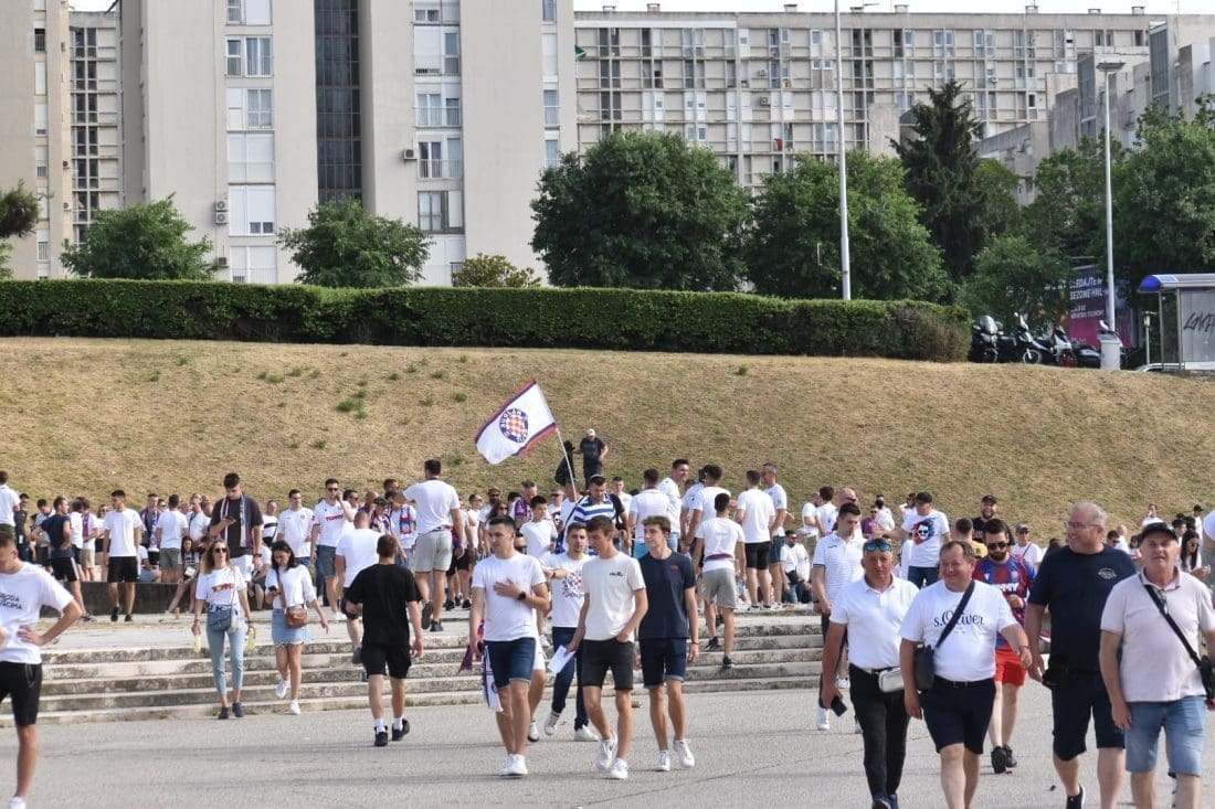 Kako smo već ranije pisali, Torcida je stigla ispred stadiona. Pjevali su i palili su baklje od centra grada pa sve do stadiona. Već dosta navijača ušlo je na stadion, a mnogi od njih su na ulazima i strpljivo čekaju svoj red.