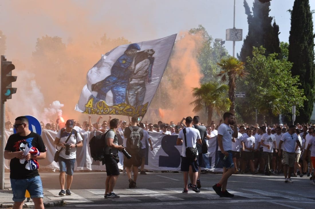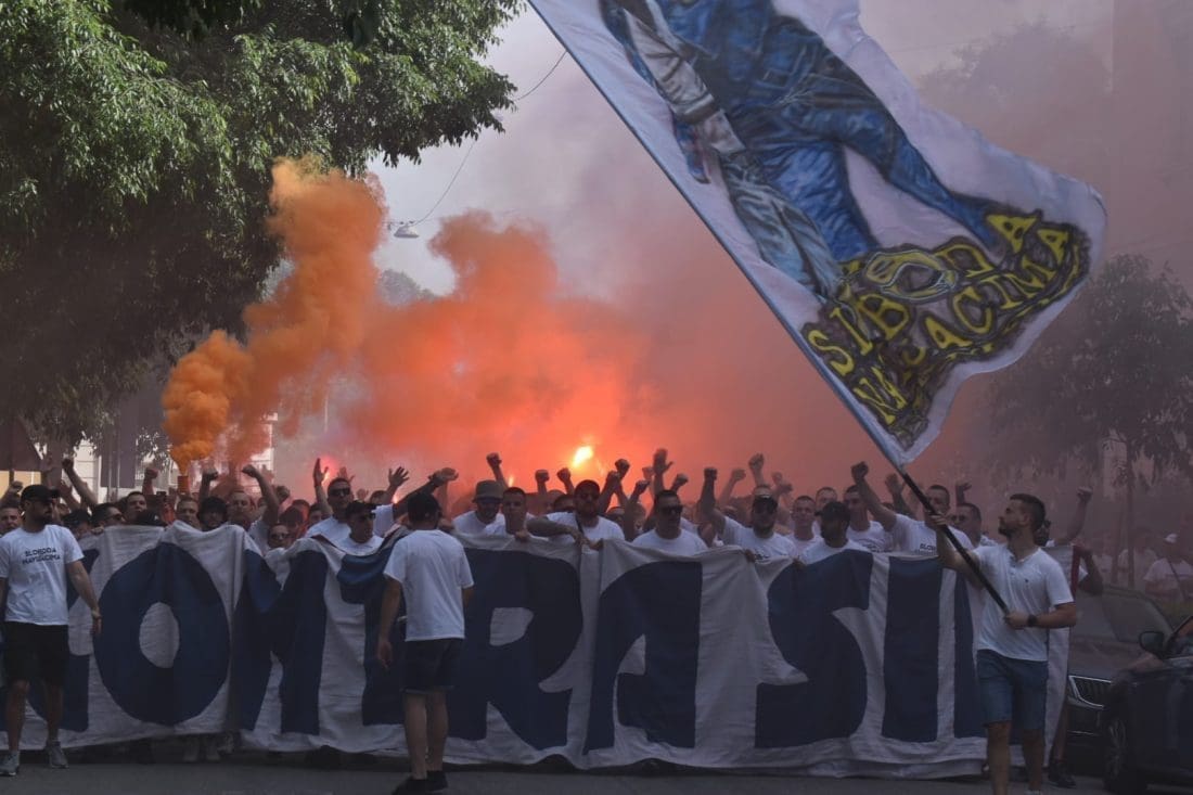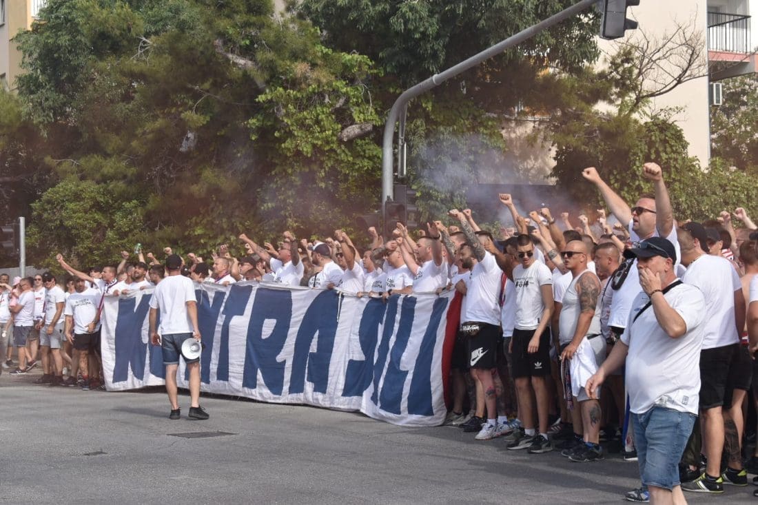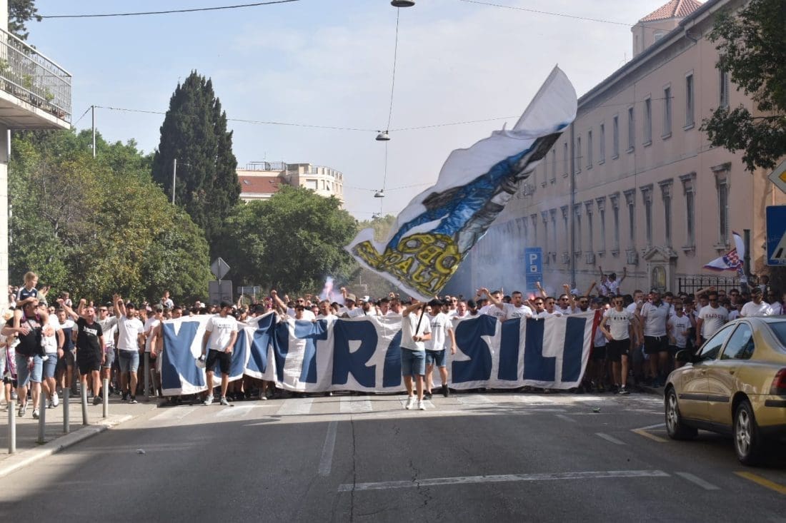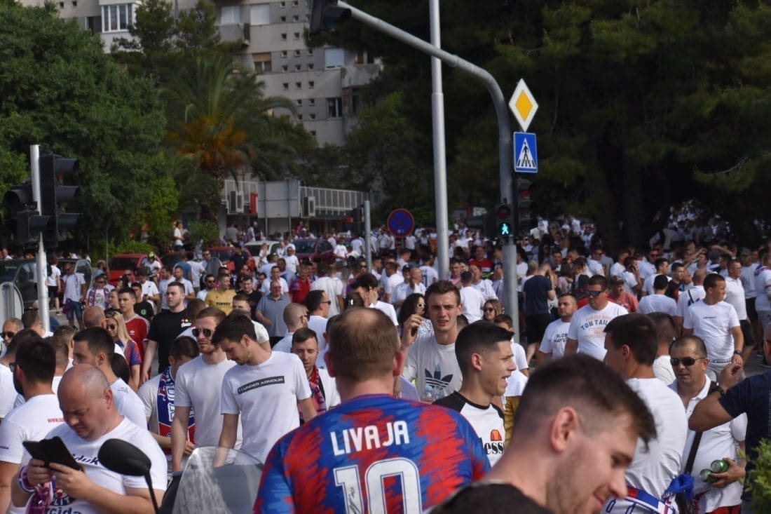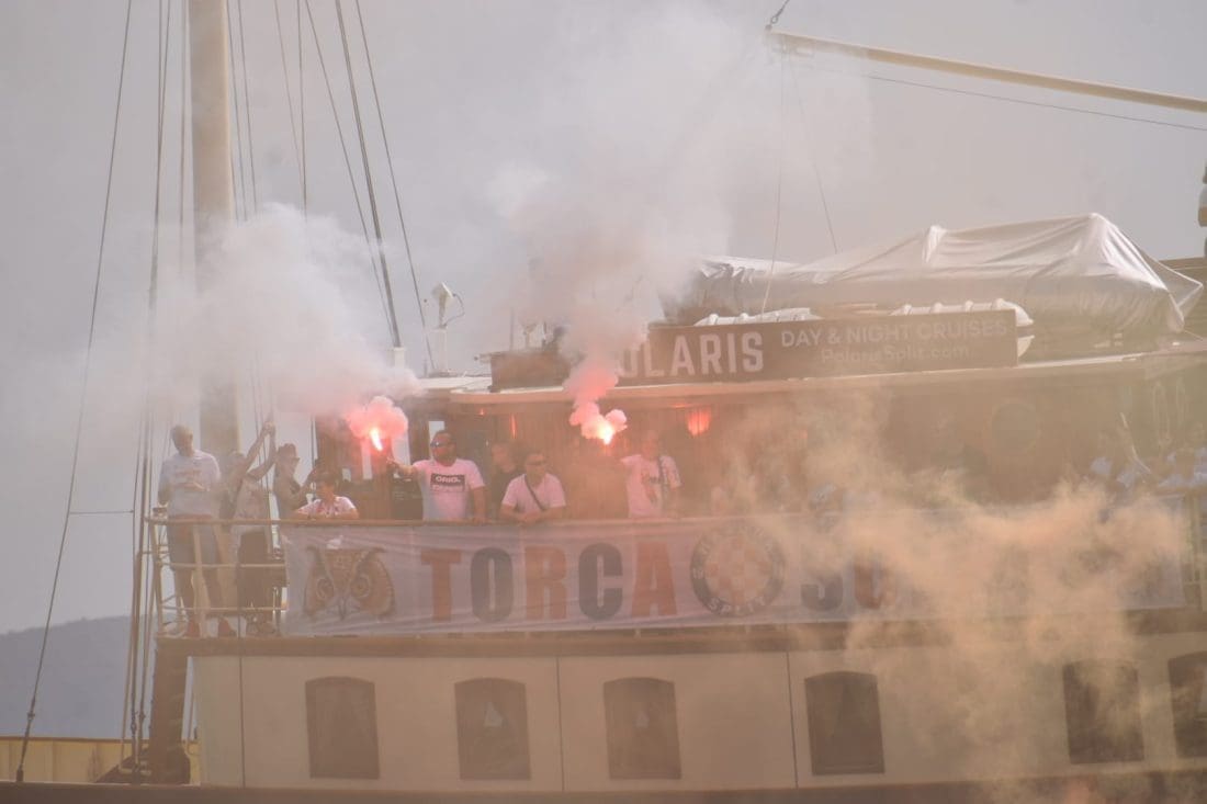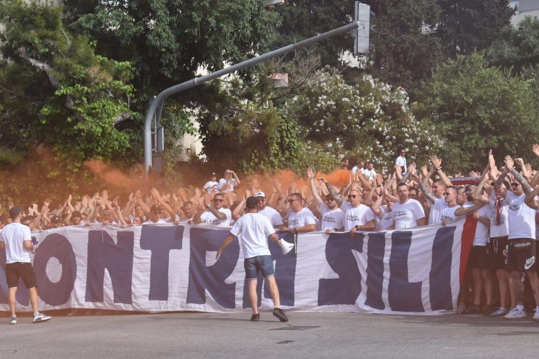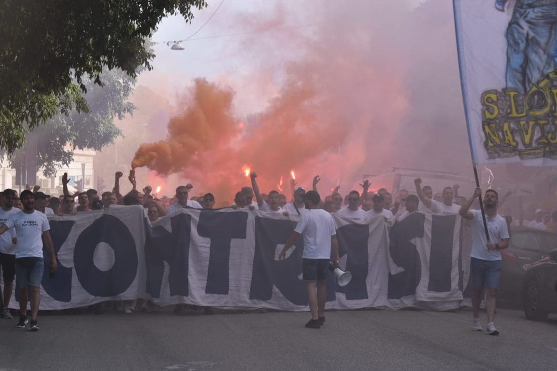 Kako smo već ranije pisali, Torcida je stigla ispred stadiona. Pjevali su i palili su baklje od centra grada pa sve do stadiona. Već dosta navijača ušlo je na stadion, a mnogi od njih su na ulazima i strpljivo čekaju svoj red.