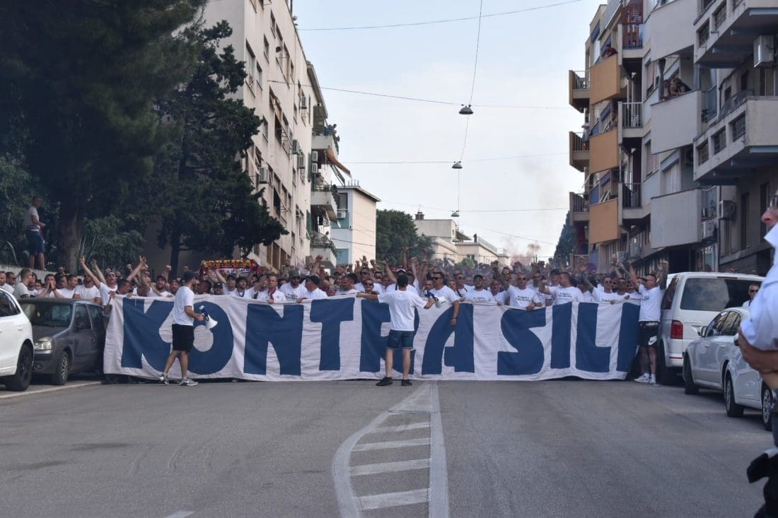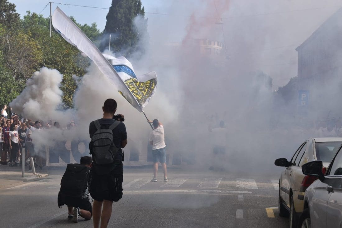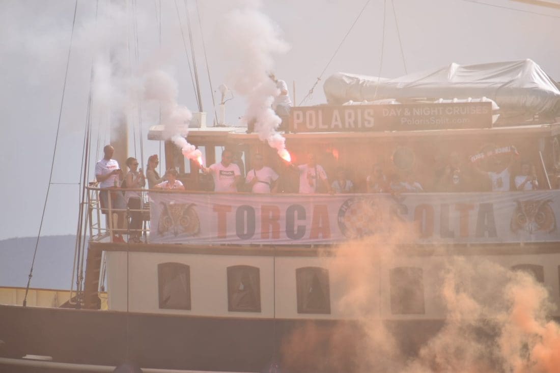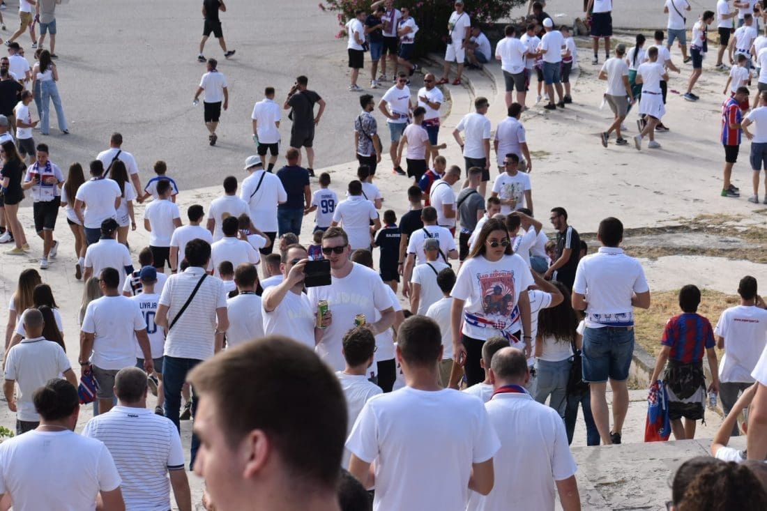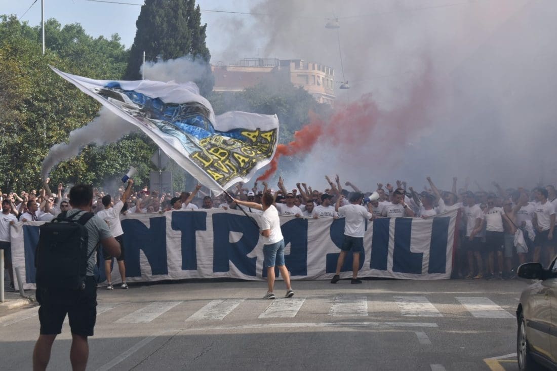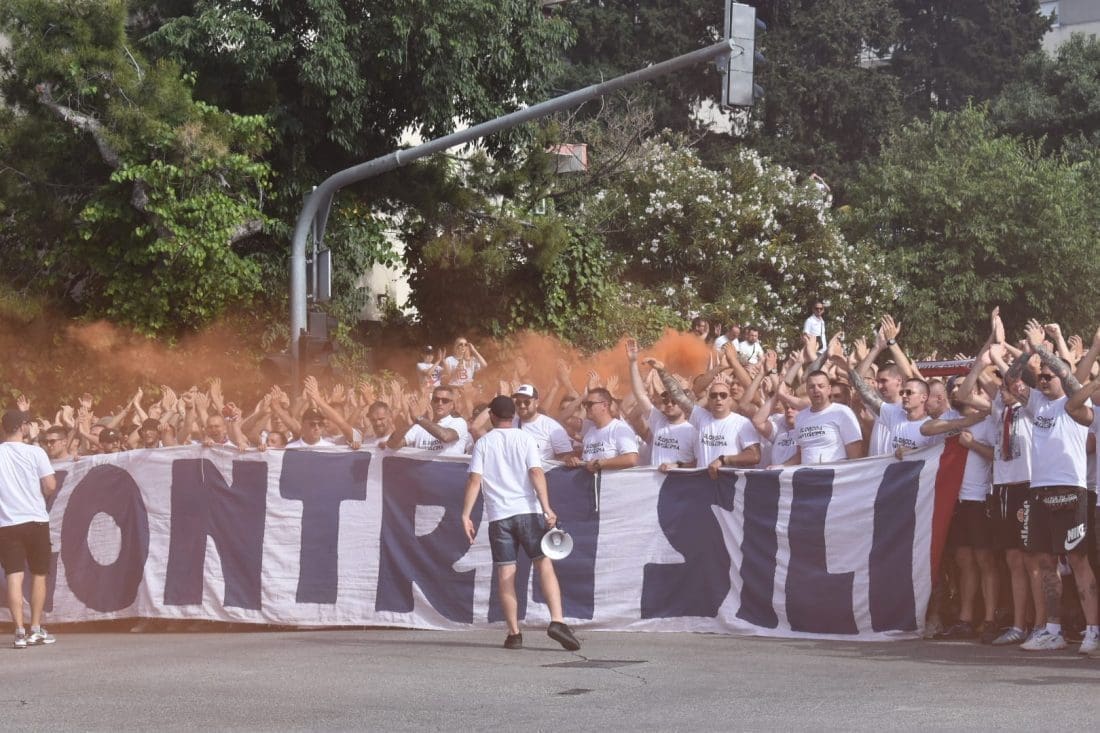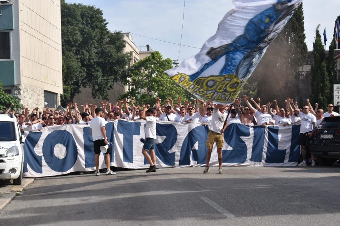 Kako smo već ranije pisali, Torcida je stigla ispred stadiona. Pjevali su i palili su baklje od centra grada pa sve do stadiona. Već dosta navijača ušlo je na stadion, a mnogi od njih su na ulazima i strpljivo čekaju svoj red.