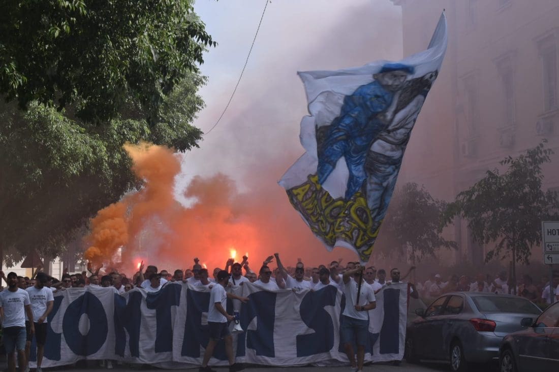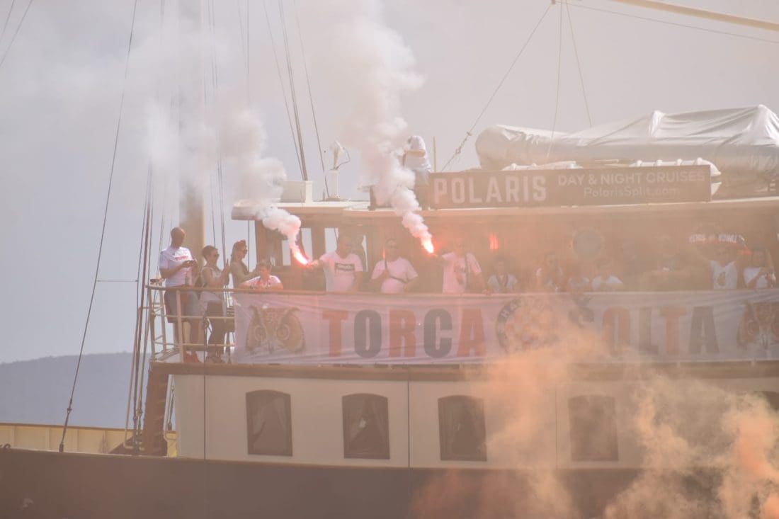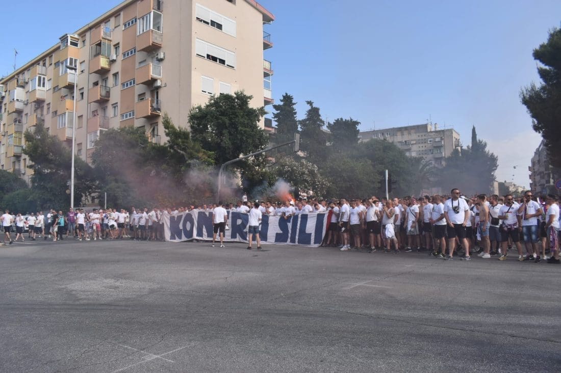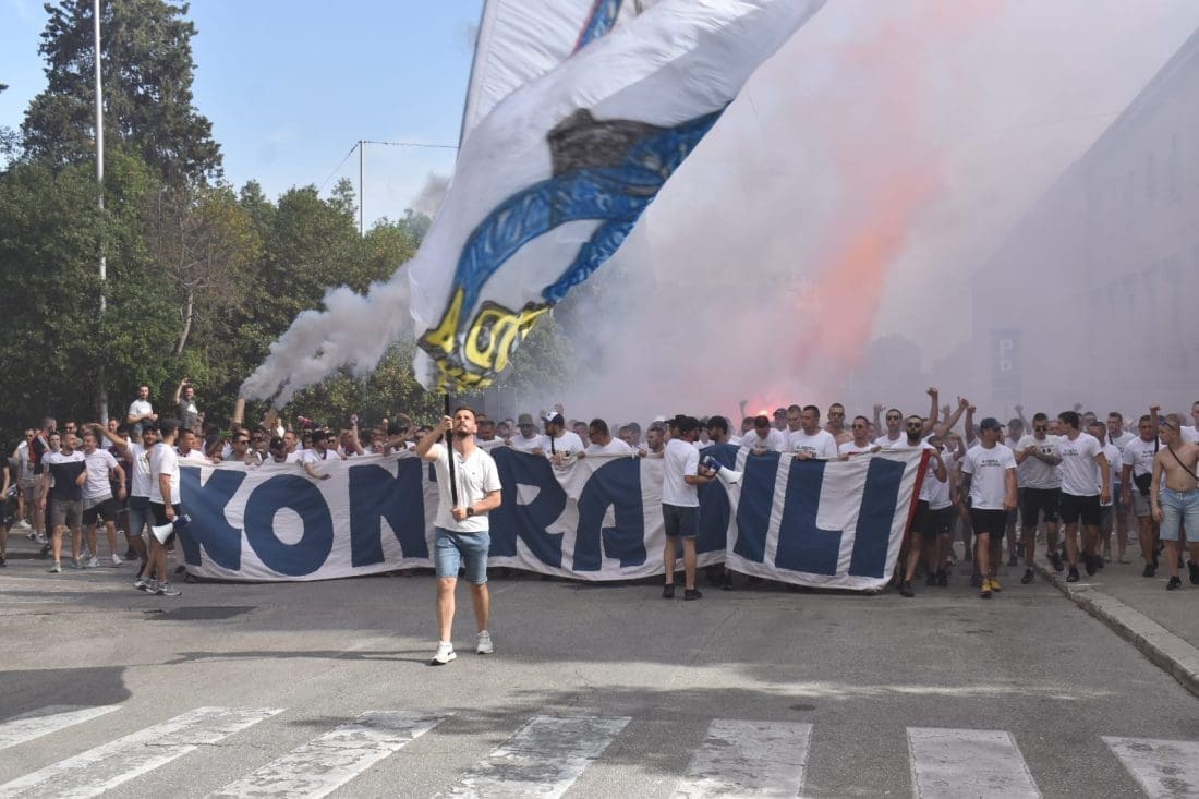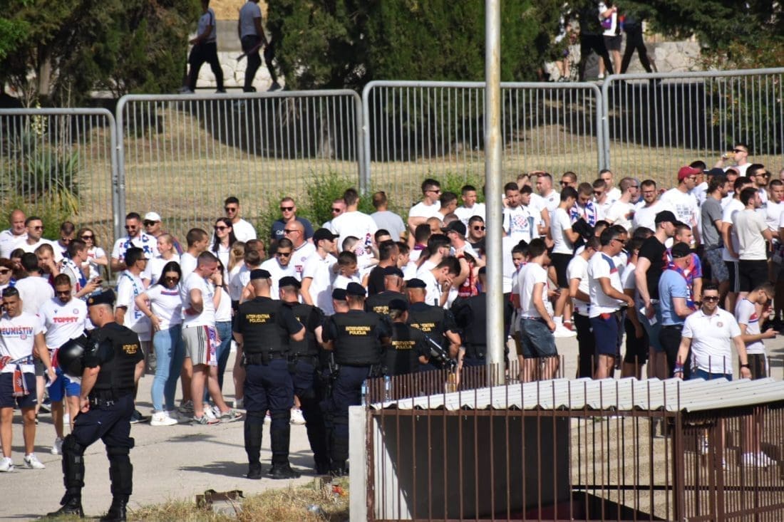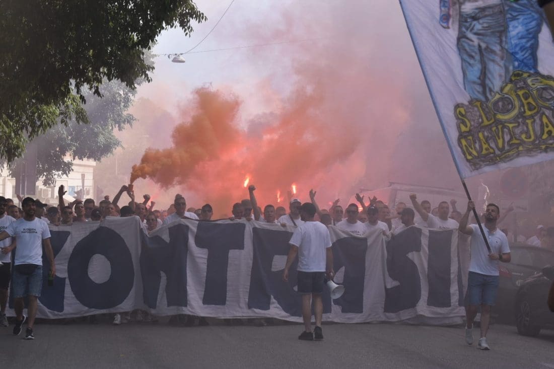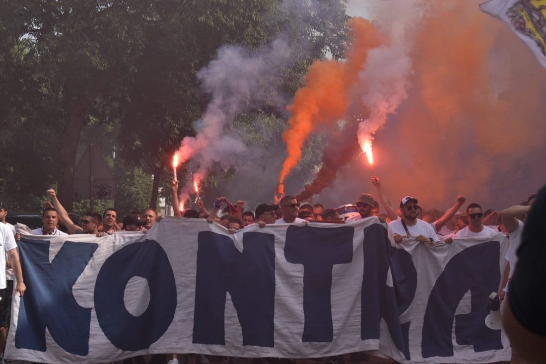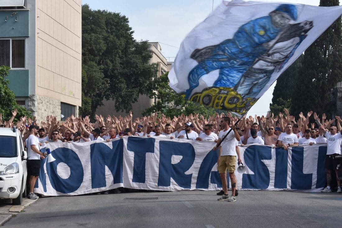 Kako smo već ranije pisali, Torcida je stigla ispred stadiona. Pjevali su i palili su baklje od centra grada pa sve do stadiona. Već dosta navijača ušlo je na stadion, a mnogi od njih su na ulazima i strpljivo čekaju svoj red.