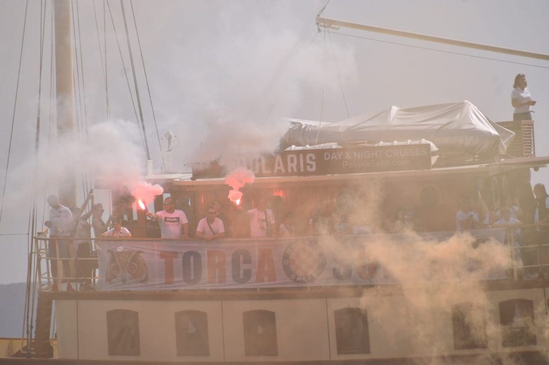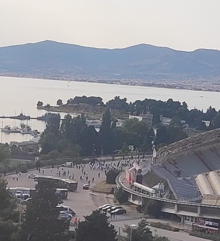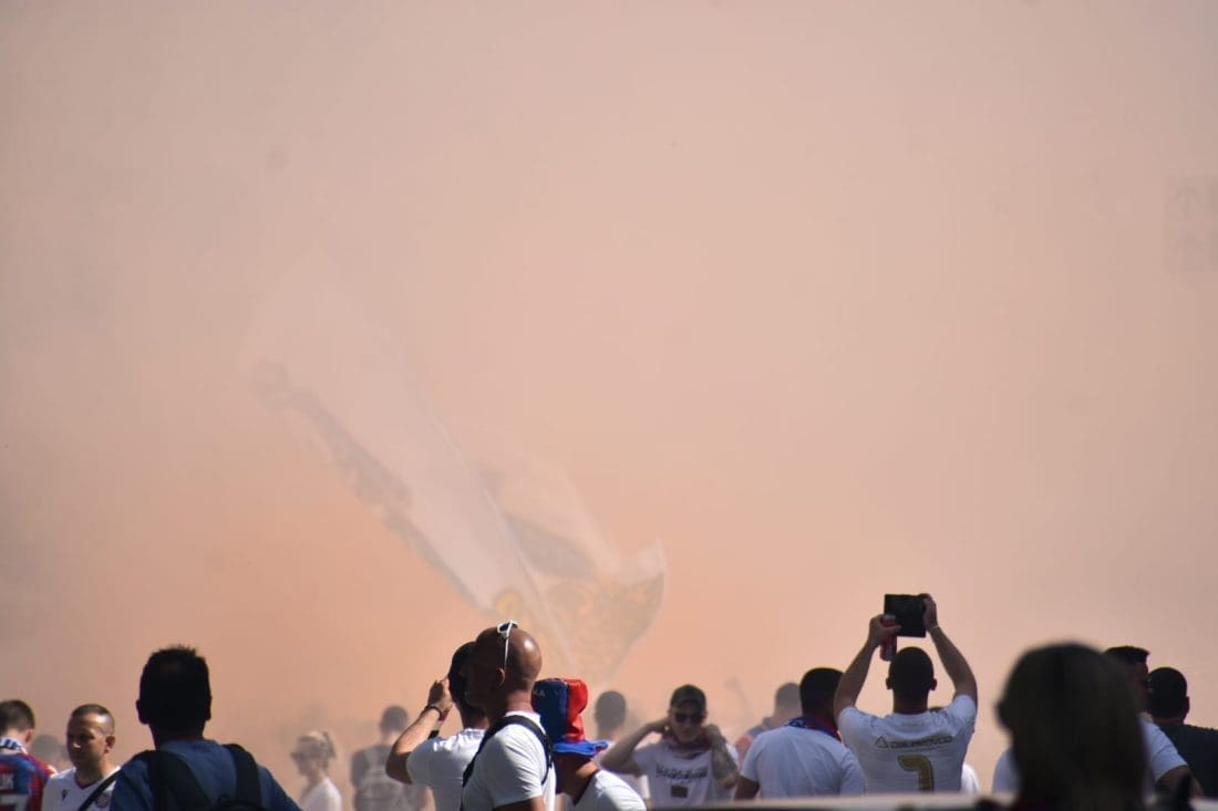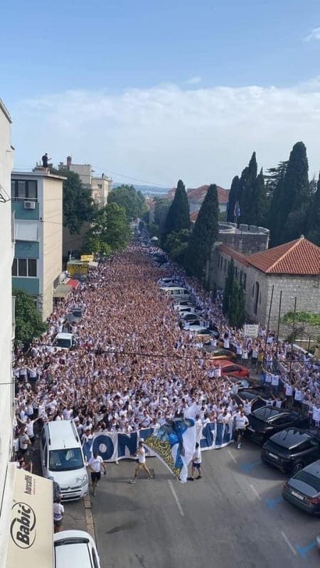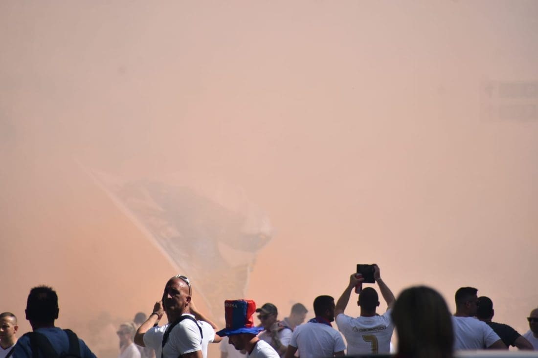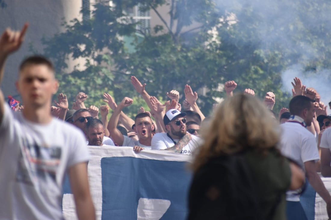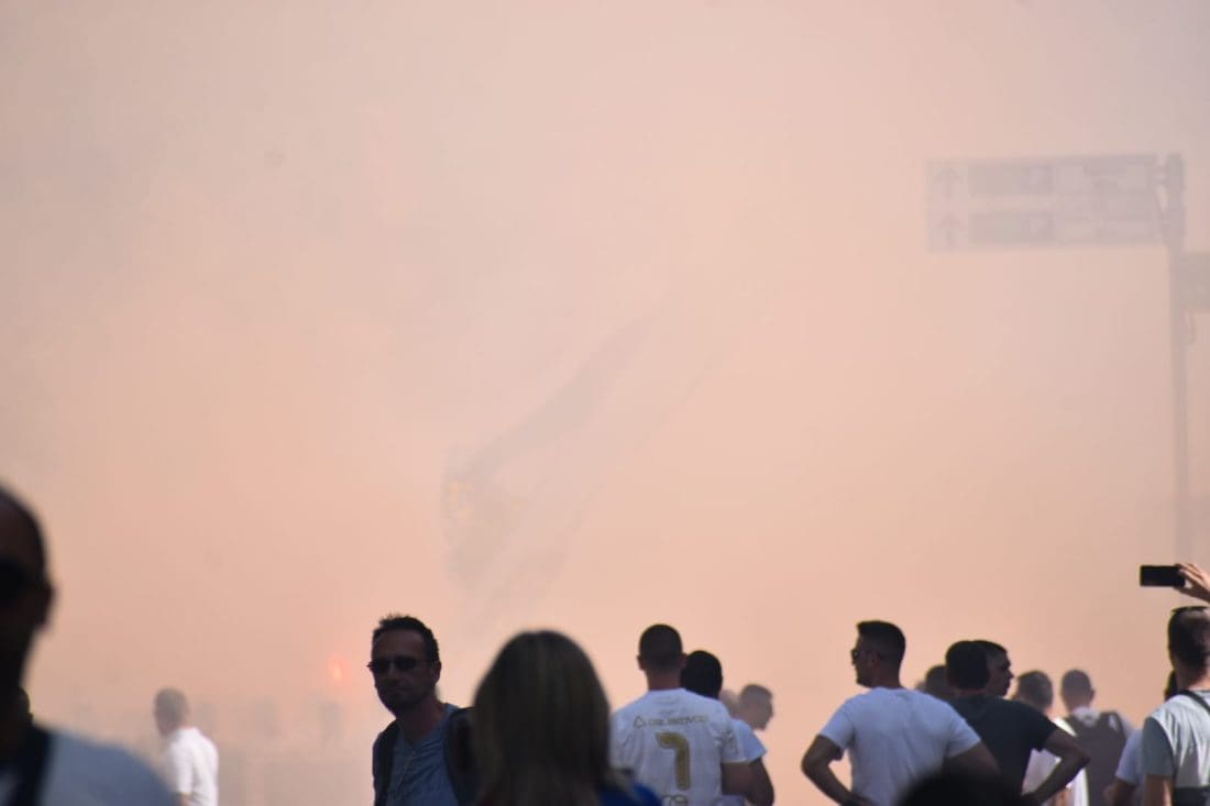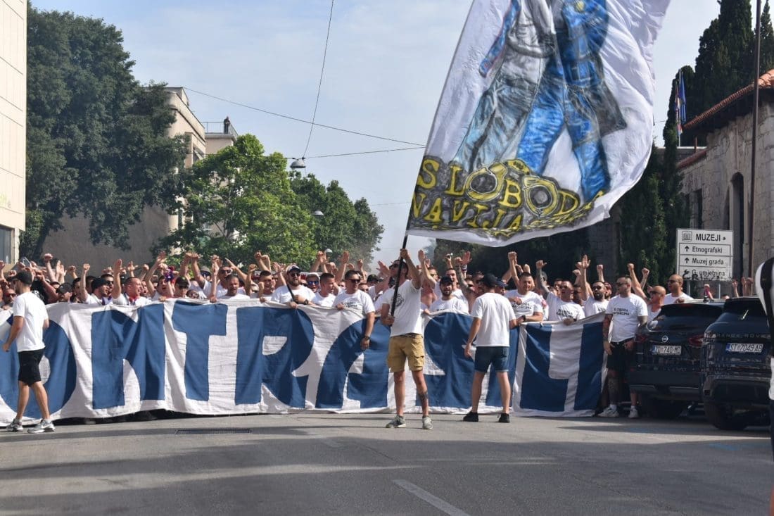 Kako smo već ranije pisali, Torcida je stigla ispred stadiona. Pjevali su i palili su baklje od centra grada pa sve do stadiona. Već dosta navijača ušlo je na stadion, a mnogi od njih su na ulazima i strpljivo čekaju svoj red.