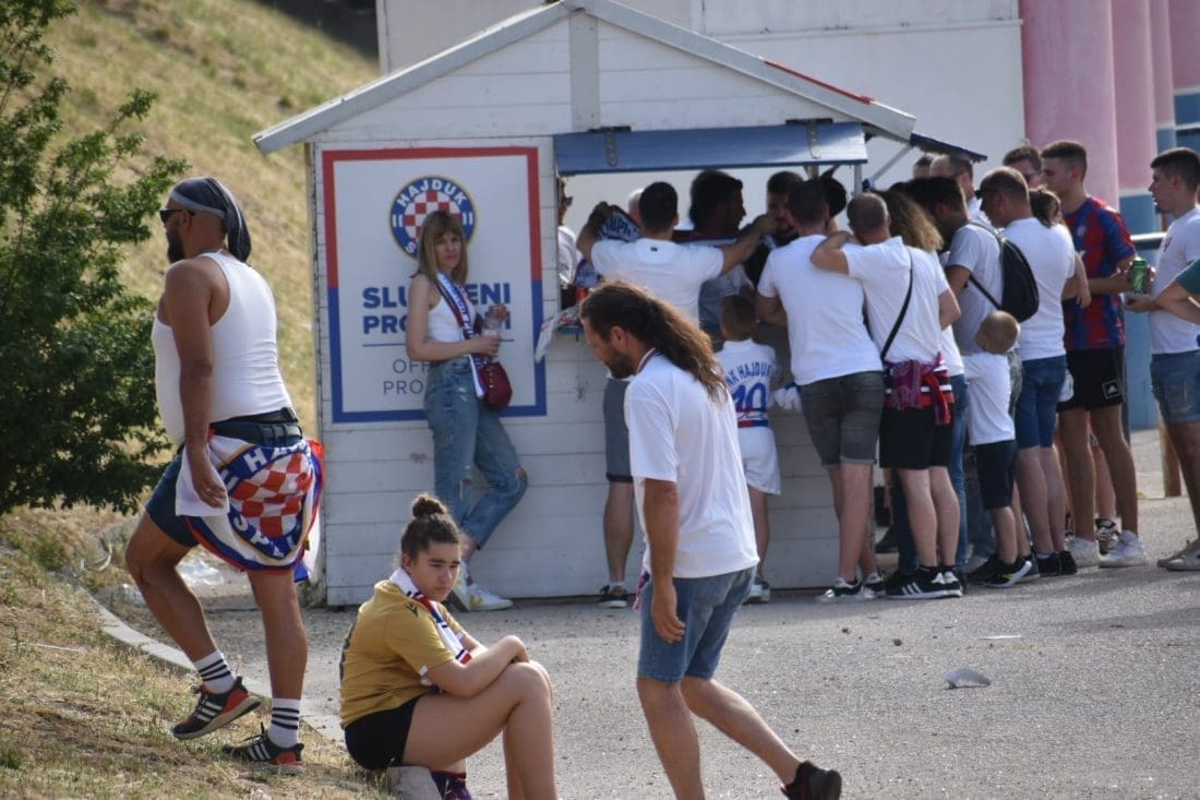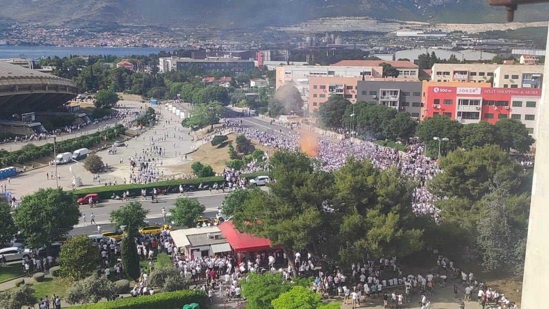 Još uvijek pristižu navijači ispred Poljuda, a na ulaznica na stadion vlada nevjerojatna atmosfera. Pjevaju se navijačke pjesme, svi navijači očekuju pobjedu Hajduka i osvajanje Kupa Hrvatske nakon devet godina.