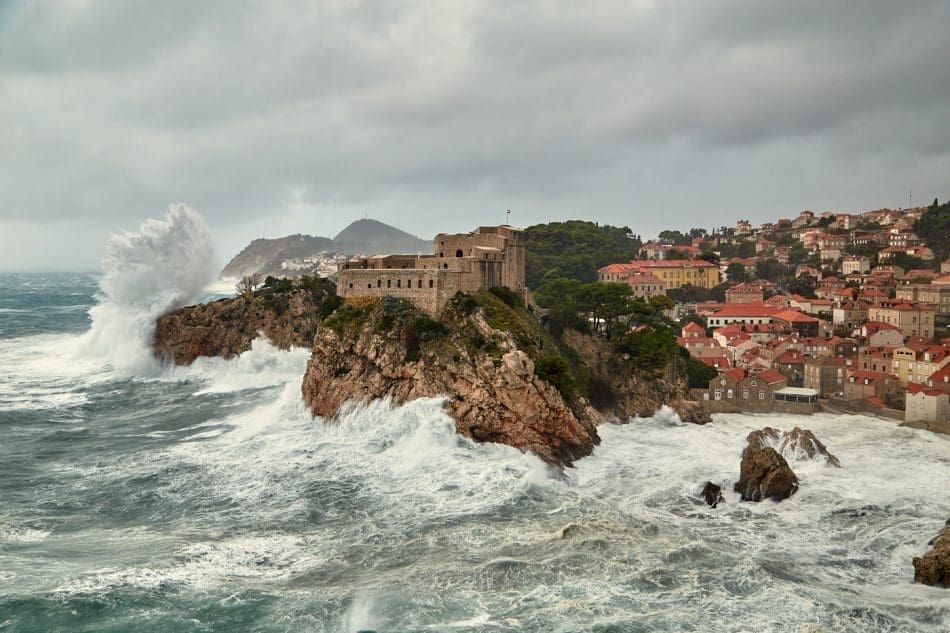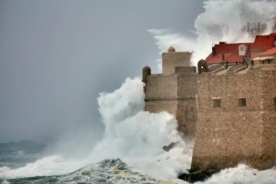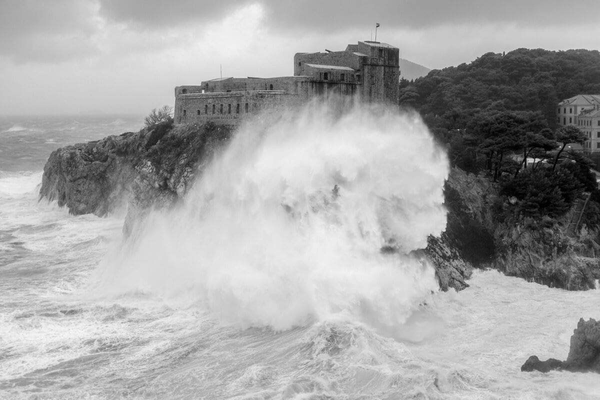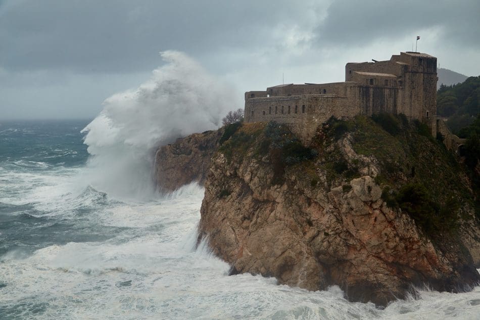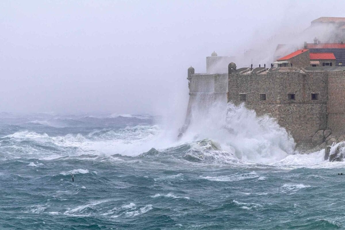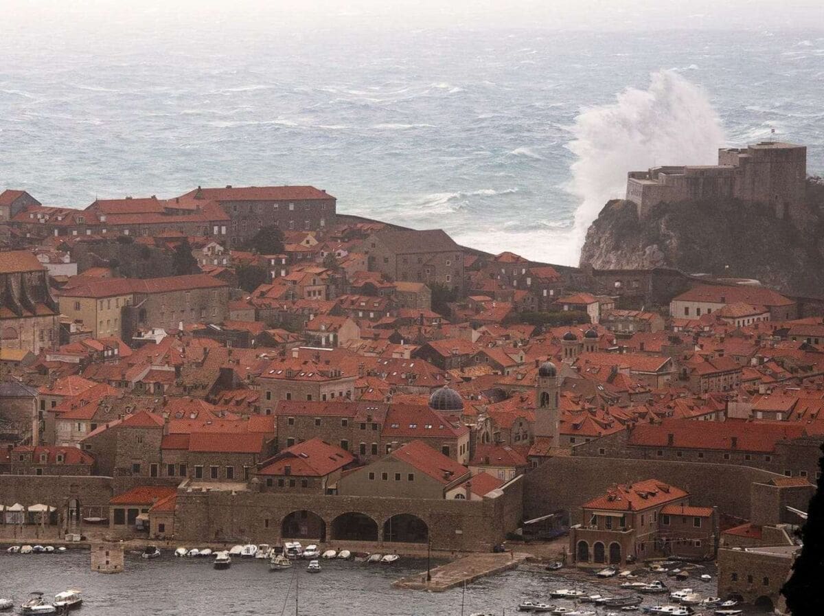 Dubrovnik je jučer osobito bio na udaru juga. Dubrovački lovci na oluje snimili su fascinantne prizore najjačeg juga u gradu. Stare gradske zidine visoke su 25 metara, a kada bi val zapljusnuo u zidine, more i morska pjena bi se uzdizali i preskakali zidine.