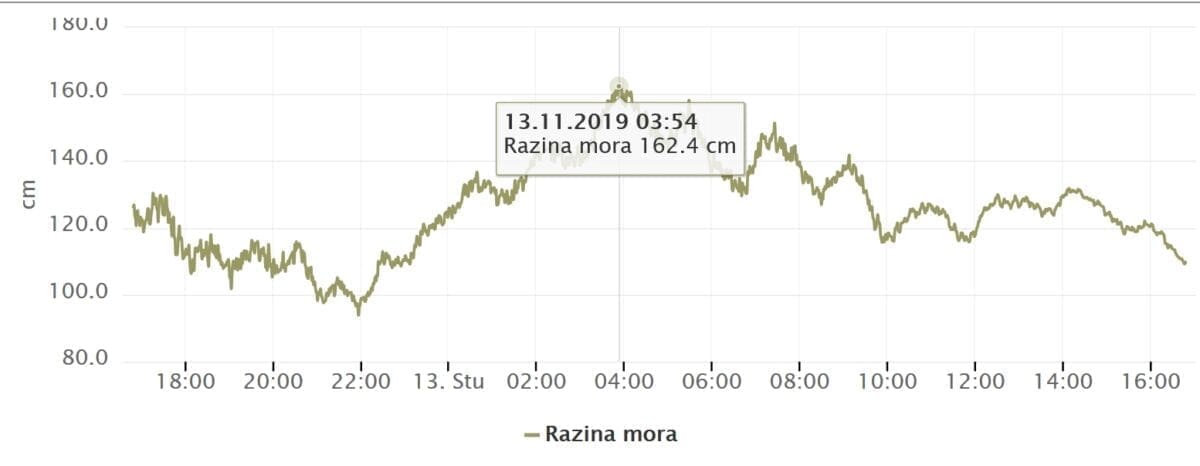 U srijedu 13. studenog 2019. godine na mareografskim postajama u Splitu i Pločama zabilježene su ekstremne razine mora. Mareografska postaja Split je u 04 sata i 02 minuta izmjerila razinu mora od 1.515 m iznad mareografske nule, odnosno 91.1 cm iznad srednje razine mora. To je najveća razina mora izmjerena od 1955. godine od kada je ova postaja započela s kontinuiranim mjerenjima.