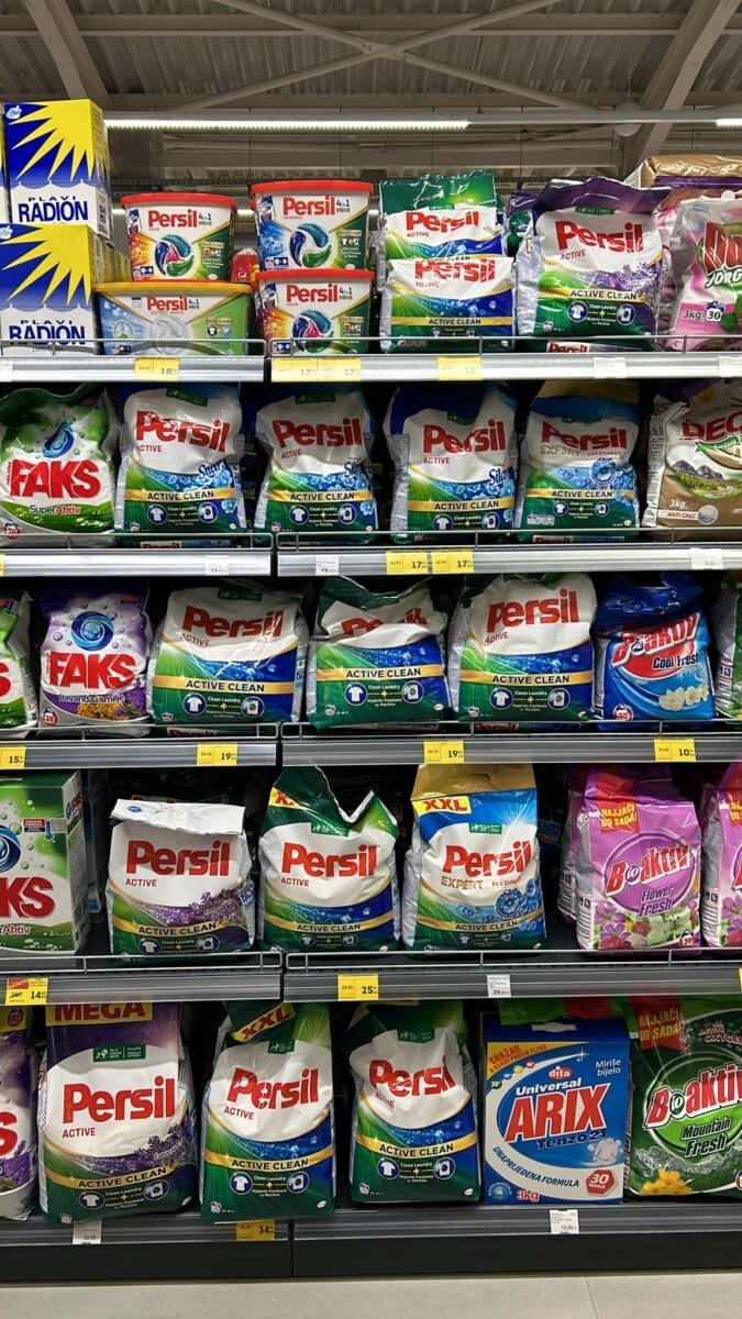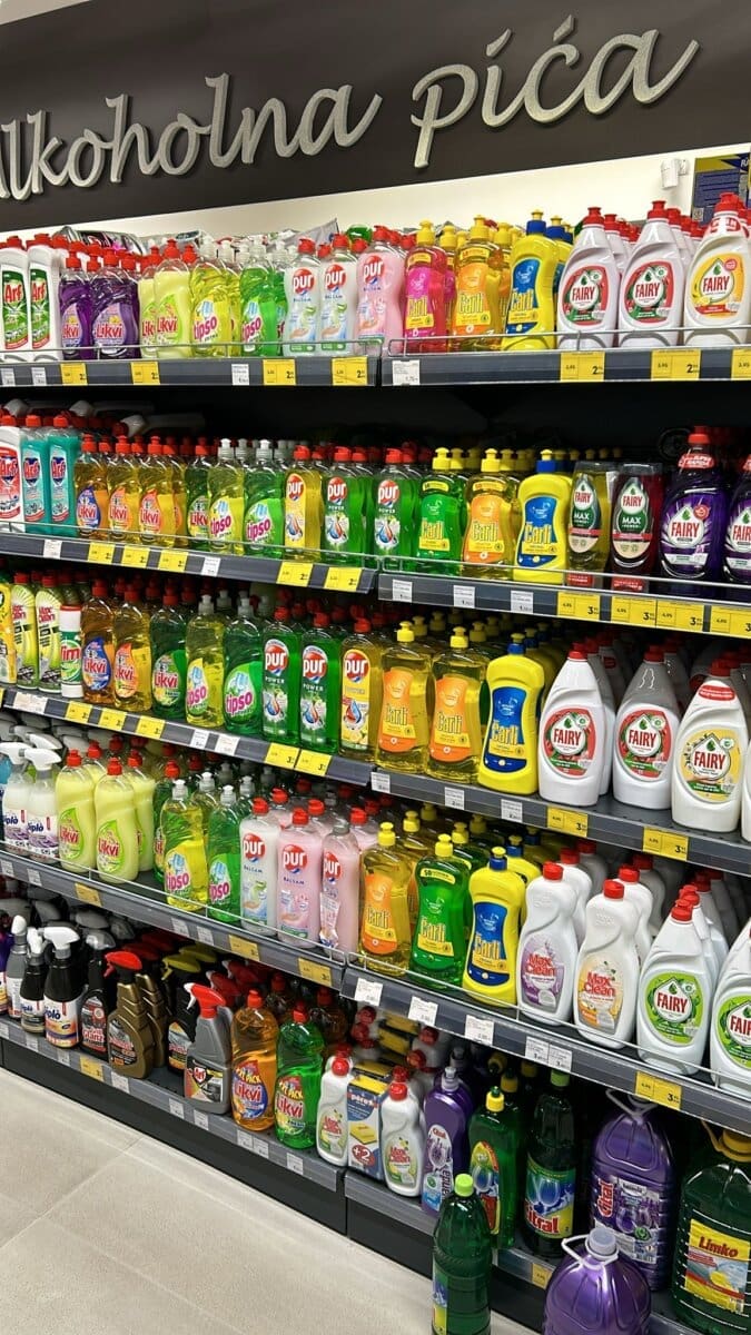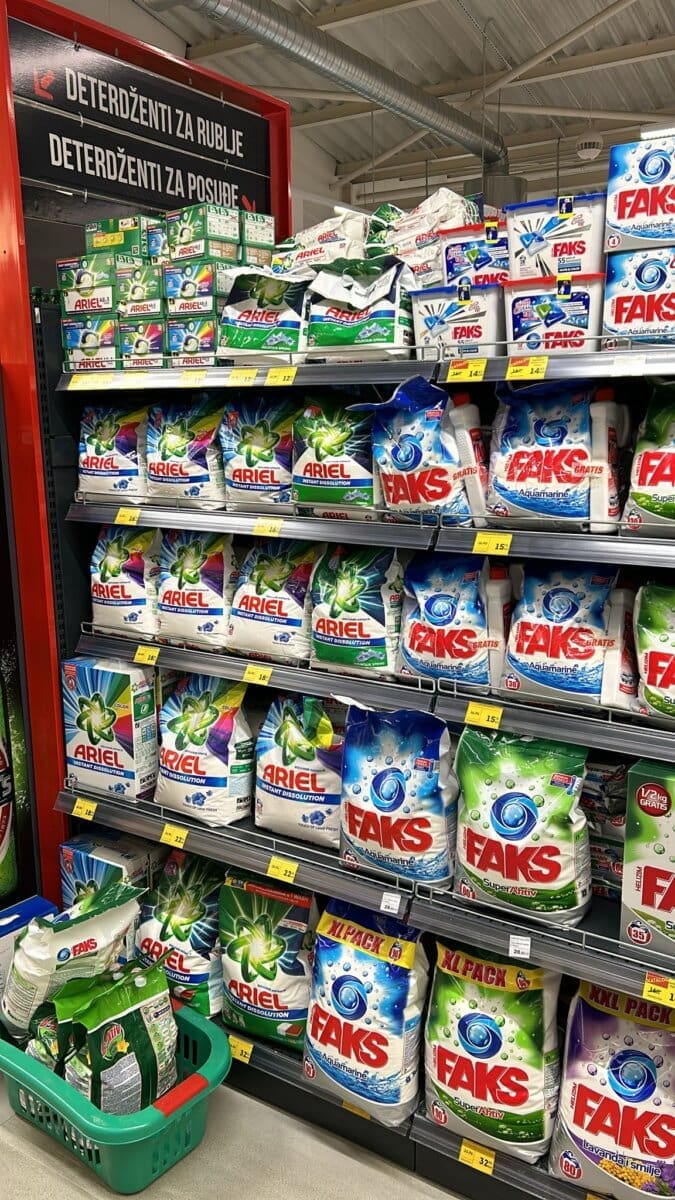 Omekšivač Ornel od 1.6 l u Hrvatskoj košta 4.59€. U BiH smo isti omekšivač platili 2.50€. Persil tablete za pranje rublja platili smo 9€, dok u Hrvatskoj iste takve tablete koštaju 15,22€.