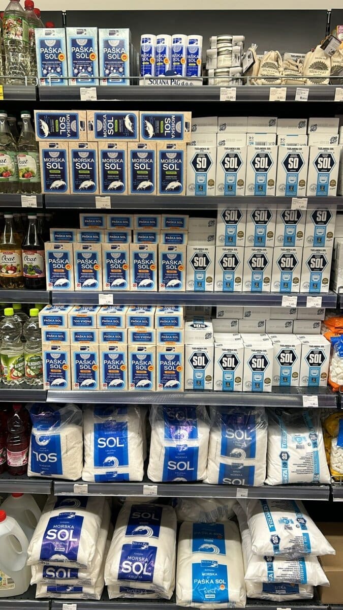 Paška sol od kilograma u BiH košta 1.25 KM (0.69€). U Hrvatskoj je hrvatska paška sol 1€. Ciglicu Frank kave platili smo 7.45 KM (3.81 €). U Hrvatskoj ta ista hrvatska kava košta 4.50 €.