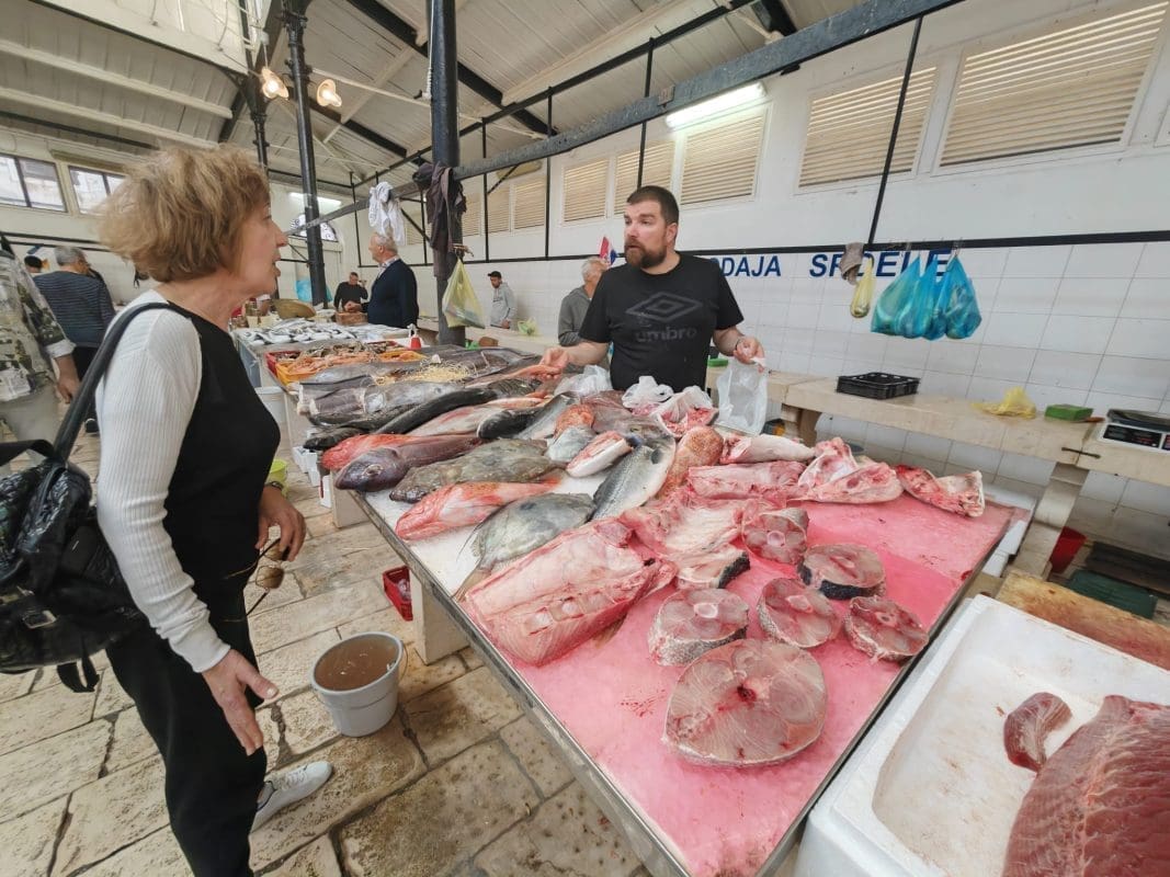Bacili smo đir splitskom peškarijom. Danas je malo veća gužva nego proteklih dana. Ipak je petak dan za ribu, stoga ne čudi što je danas nešto veća gužva. Splićani se drže onoga da se riba jede petkom iako bi bilo dobro da je i češće na našem jelovniku.