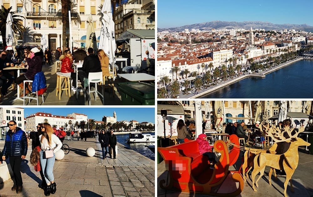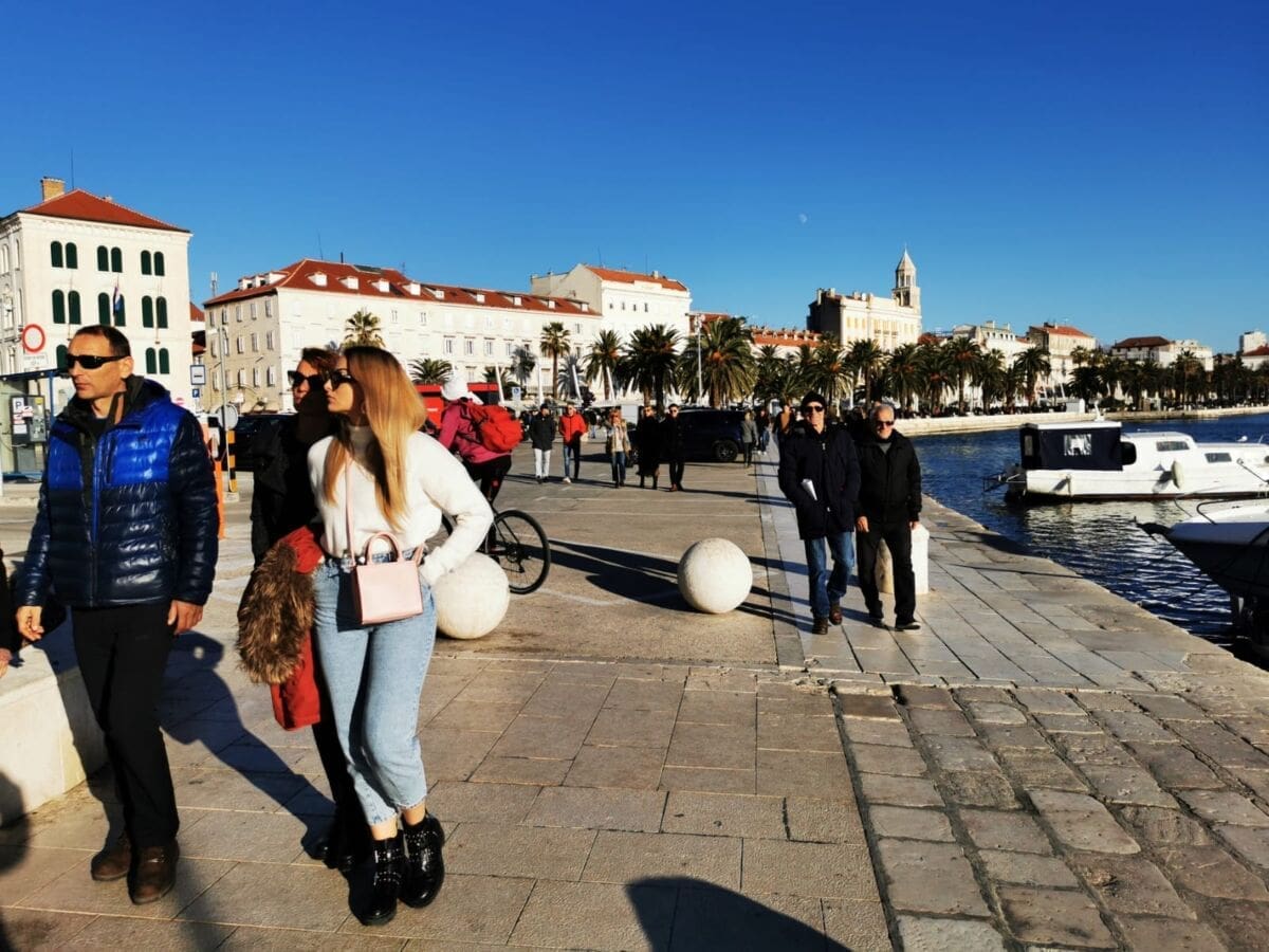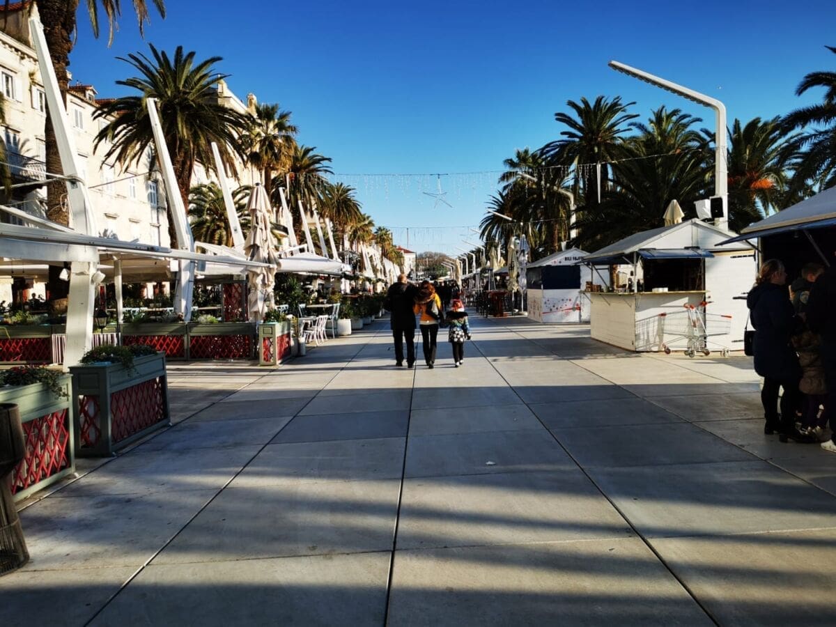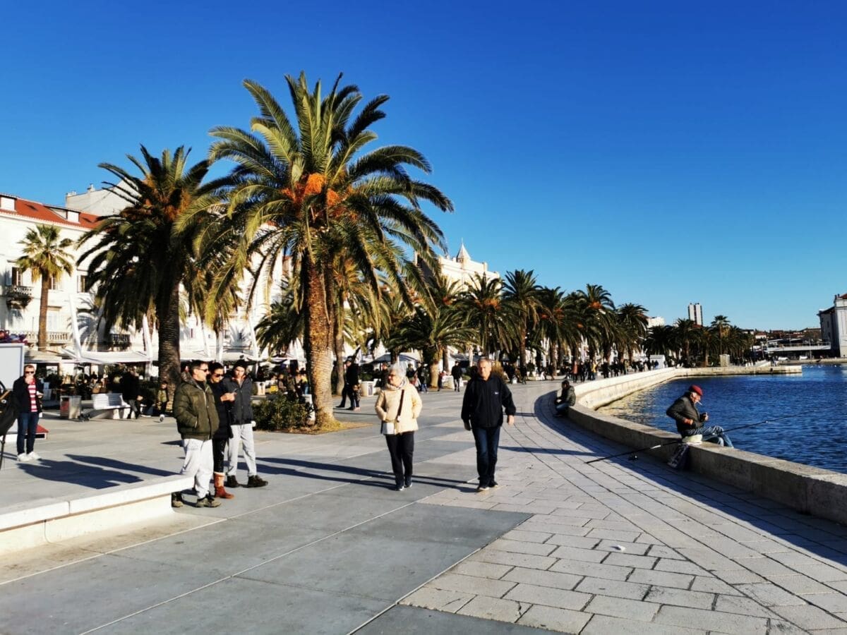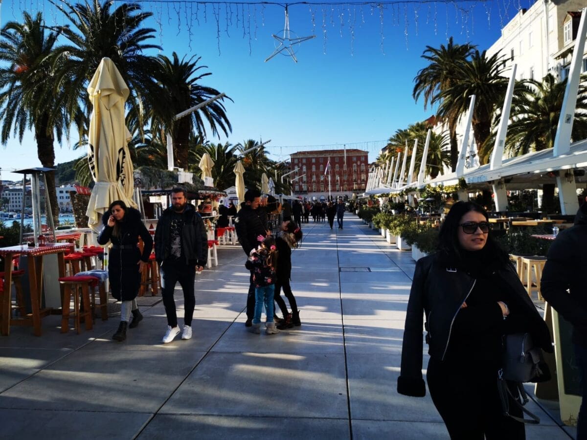 Još jedan neradni, a sunčan, zimski dan izmamio je Splićane na omiljenu šetnicu. Barem one koji nisu iskoristili produženi vikend za bijeg iz grada. Adventske kućice su tradicionalno puste, a većina građana zrake sunca upija na štekatima.
