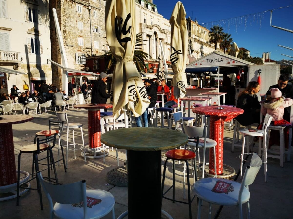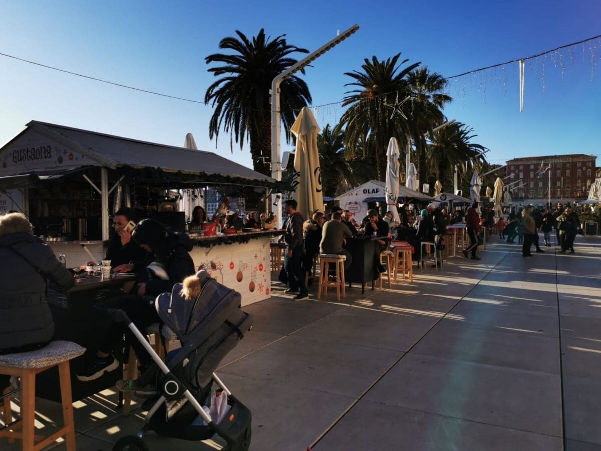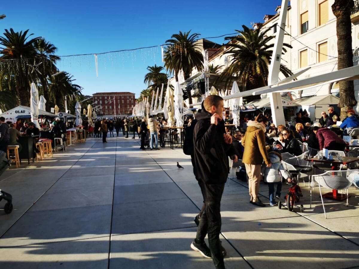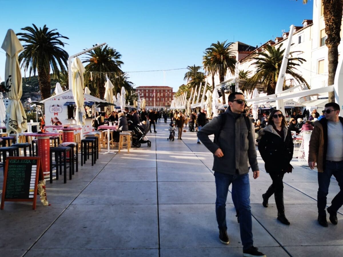 Još jedan neradni, a sunčan, zimski dan izmamio je Splićane na omiljenu šetnicu. Barem one koji nisu iskoristili produženi vikend za bijeg iz grada. Adventske kućice su tradicionalno puste, a većina građana zrake sunca upija na štekatima.