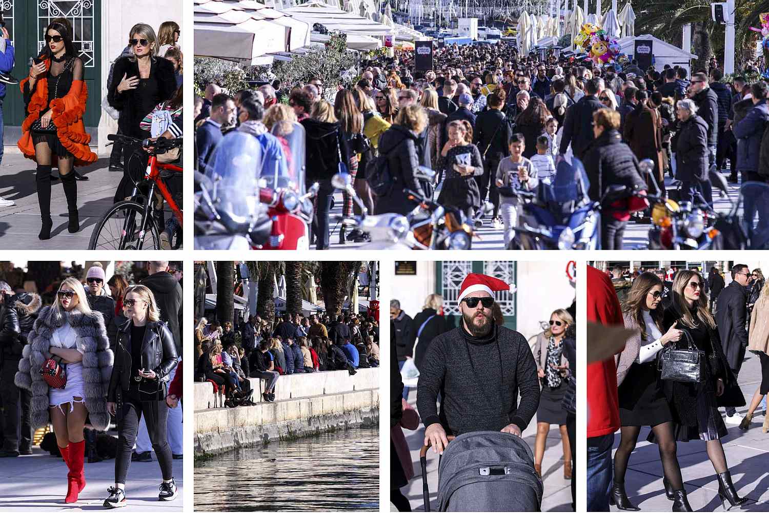 Točno kada treba, vratilo nam se sunce, što je pridonijelo da splitska Riva jučer bude krcata. Nakon niza tmurnih i kišnih dana, nije ni čudo da su se ljudi zaželjeli upiti koju zraku sunca, a na kućicama na Rivi tražilo se mjesto više. Kao što možete vidjeti na fotografijama snimljenim tijekom utorka, sunčane naočale bile su najtraženiji artikl. Bilo je i onih koji nisu mogli odoljeti blagdanskom ozračju, pa su nosili kapice Djeca Božićnjaka, ali i onih koji su bili hrabrije odjeveni za ovaj dio godine.