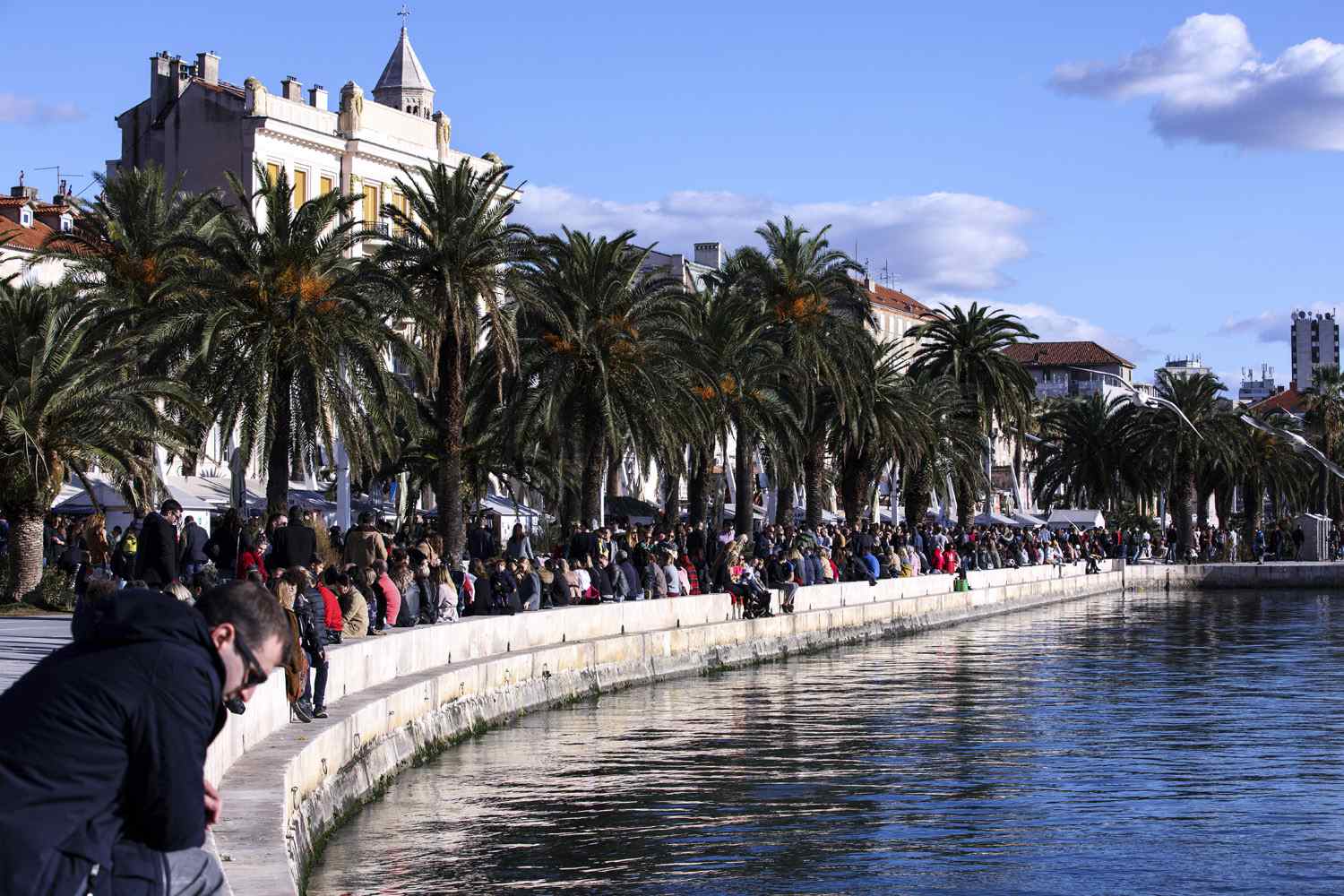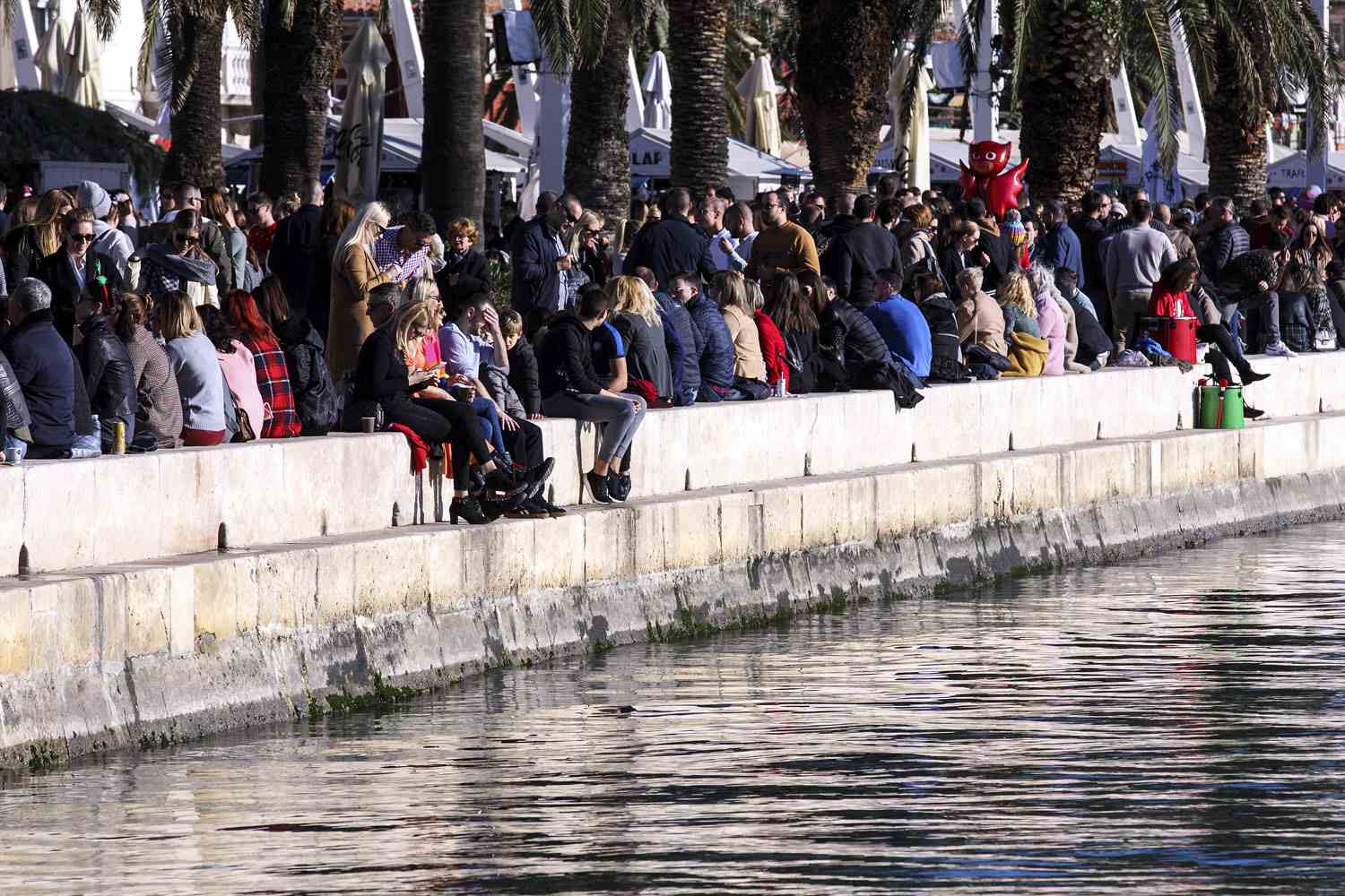 Kako nisu svi uspjeli uhvatiti svoje mjestu u nekom od ugostiteljskih objekata ili kućica, mnogi su se zadovoljili sjedeći na zidiću uz more.