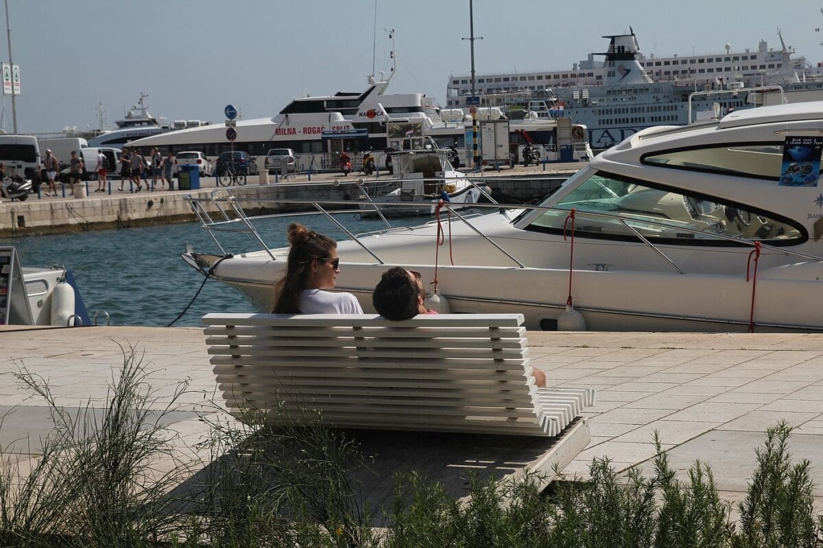 Nakon kišovite i gromovite subote, Riva je u nedjelju zasjala pod vrućim suncem koji nas je ponovno vratio u ''ljetno raspoloženje''. Temperature preko 25 Celzijevih stupnjeva nisu zasmetale domaćima i turistima u šetnji Rivom, a oni malo umorniji, svoj zaklon od vrućina pronašli su ispod palmi.