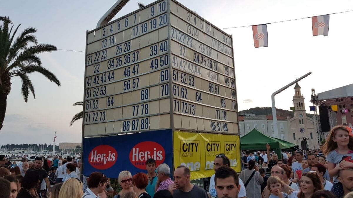 Baš kao i svake godine na svetog Duju na splitskoj Rivi je iza 19 sati započelo izvlačenje tombole. Gomila ljudi se okupila pred pozornicom u iščekivanju brojeva.