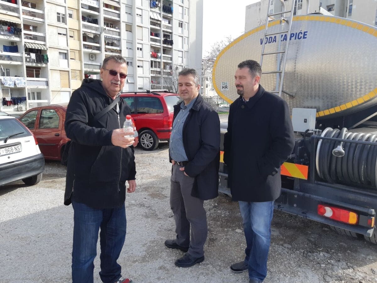 Moje priopćenje od prije dva dana očito je palo na plodno tlo. Potaknuti (pretpostavljam) tim priopćenjem, na Sućidru su se s cisternom punom ovaj put pitke i čiste vode iz Srinjina najavljeno ukazale najodgovornije osobe VIK-a, privremeni upravitelj VIK-a Joško Čelan dipl. ing. i tehnički direktor Ivica Perić dipl. ing.. U ugodnom razgovoru nazočili su i neki građani koji su ih zasuli pitanjima.
