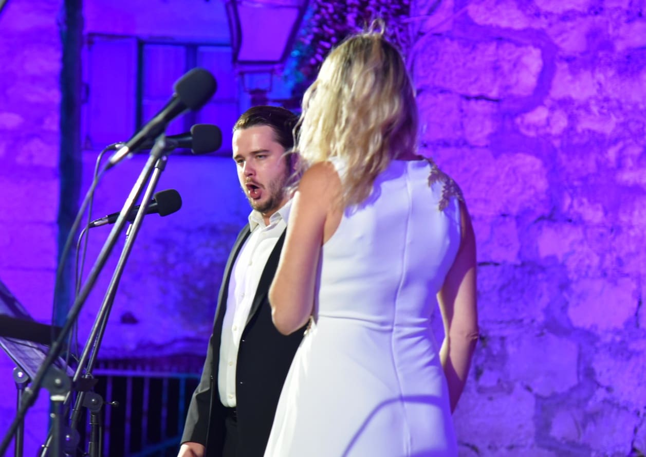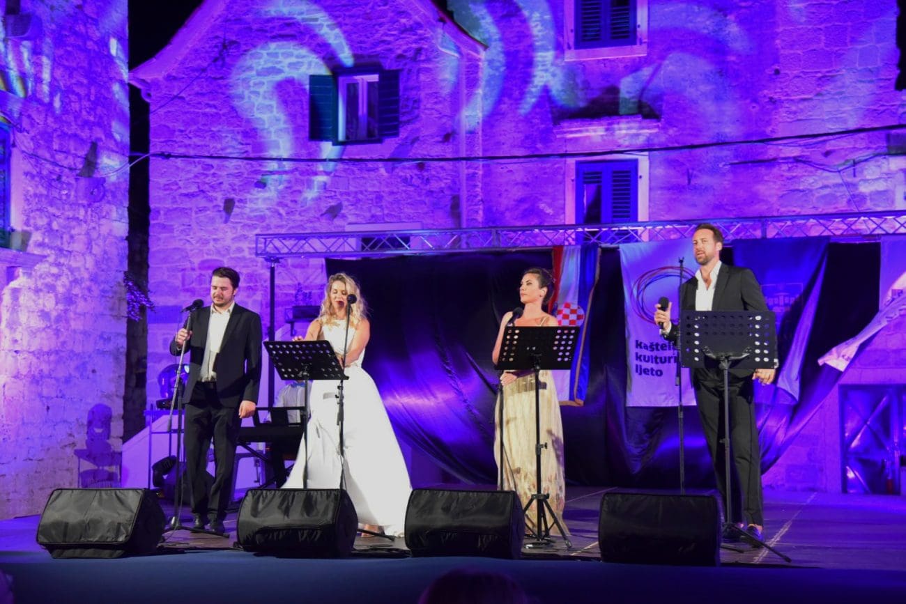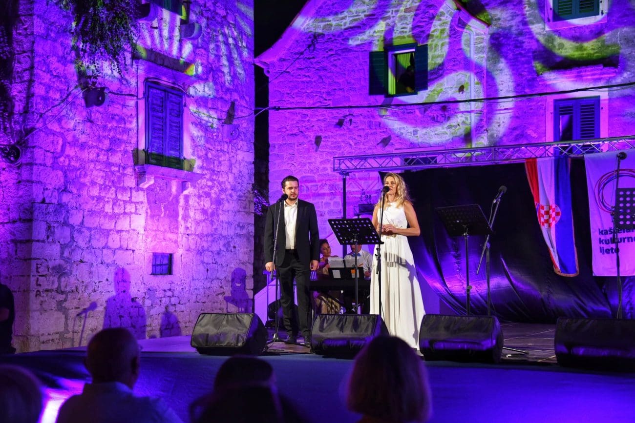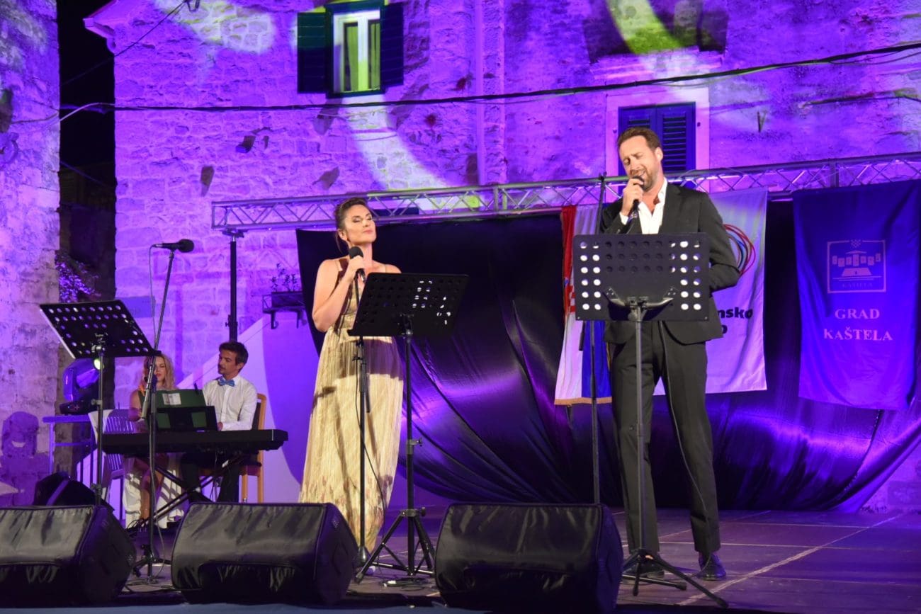 Slavljenički koncert, jer govorimo o manifestaciji koja se odvija već 15 godina u okviru Kaštelanskog kulturnog ljeta, otvorile su Antonija i Ana skladbom "Daleko me biser mora", a prvi set bio je rezerviran za Tijardovića i Verdija. Nakon niza Verdijevih arija izvođači nas vode u svijet popularne glazbe 20. stoljeća.