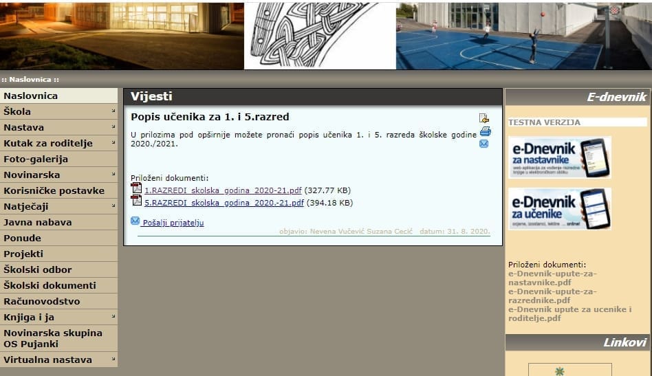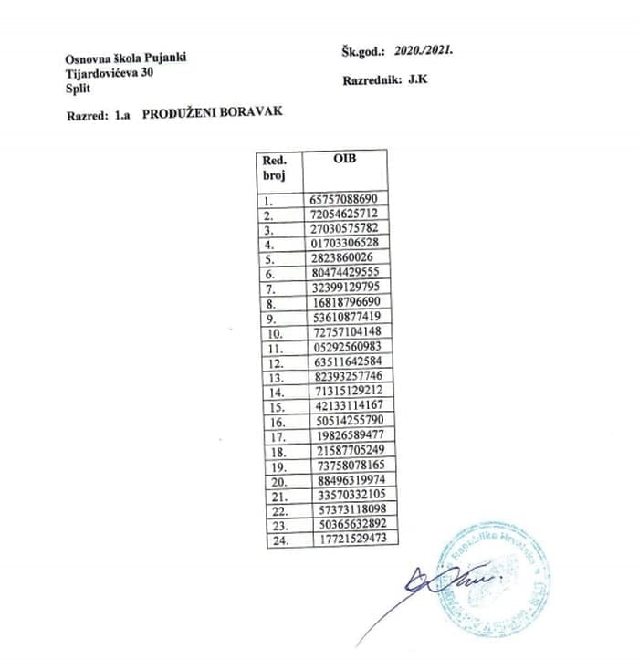 Na web stranici škole OŠ Pujanke u ponedjeljak, 31. kolovoza, objavljena je obavijest s popisom učenika 1. razreda šk.godine 2020./2021. Kada se otvori dokument, za 1.a razred u produženom boravku piše kako je razrednik J.K. Druge učiteljice ili učitelja razredne nastave pod tim inicijalima nema u ovoj školi.
