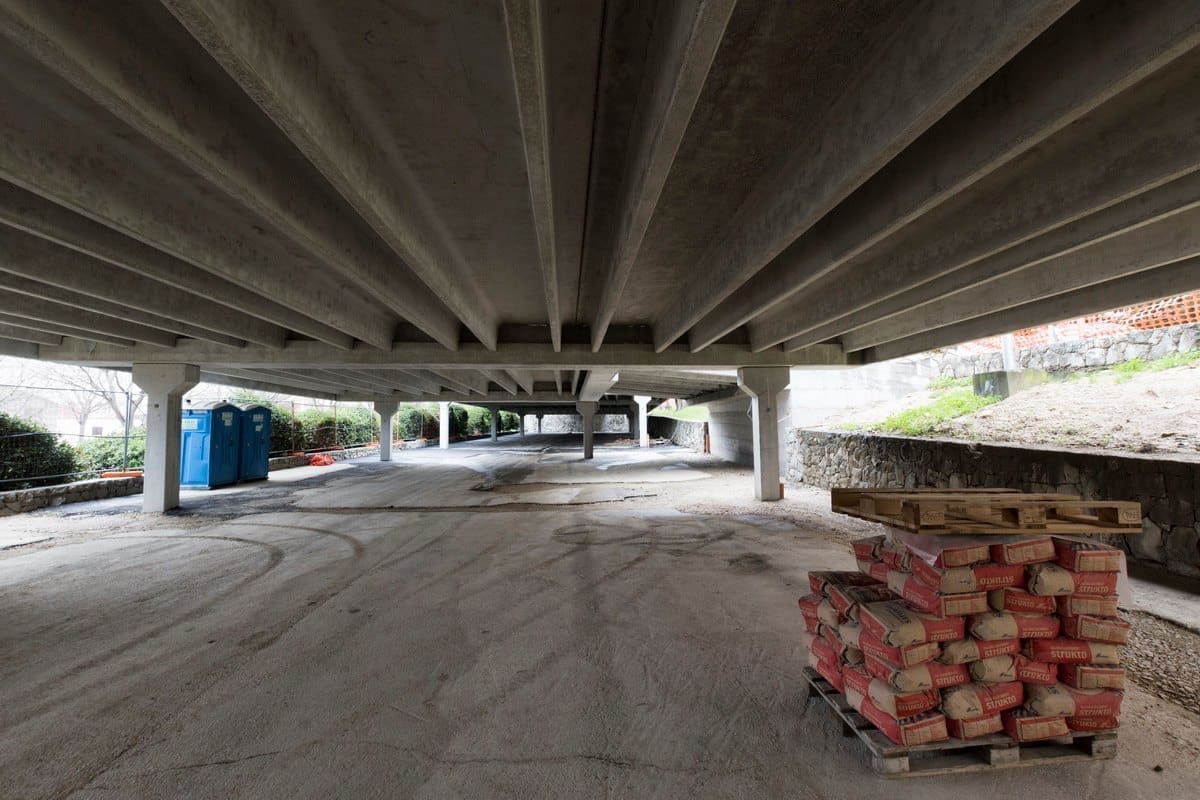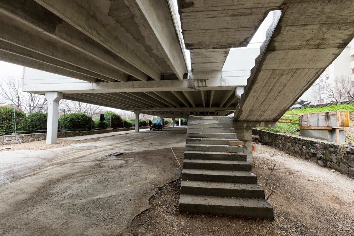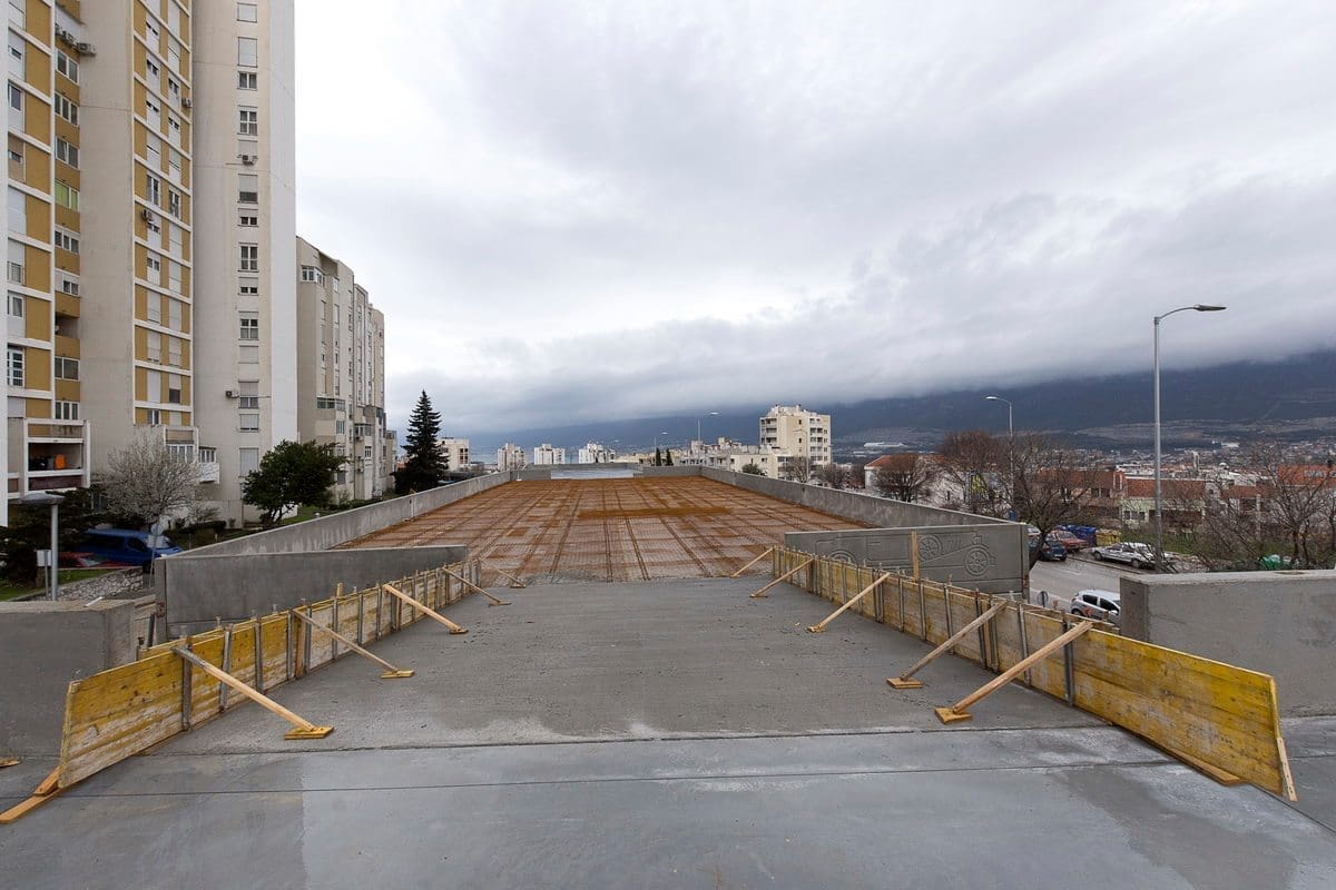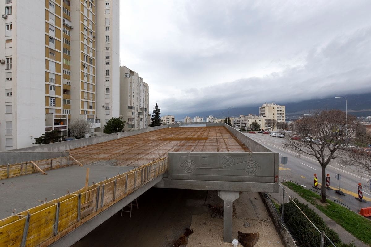Izvedena je monolitna konstrukcija zapadne ulazne rampe na kat, monolitno je izvedeno ulazno stubište gornjeg dijela parkirališta.